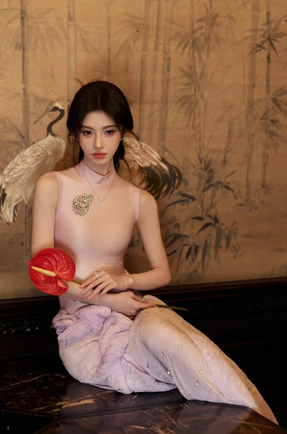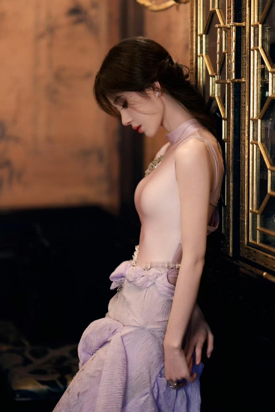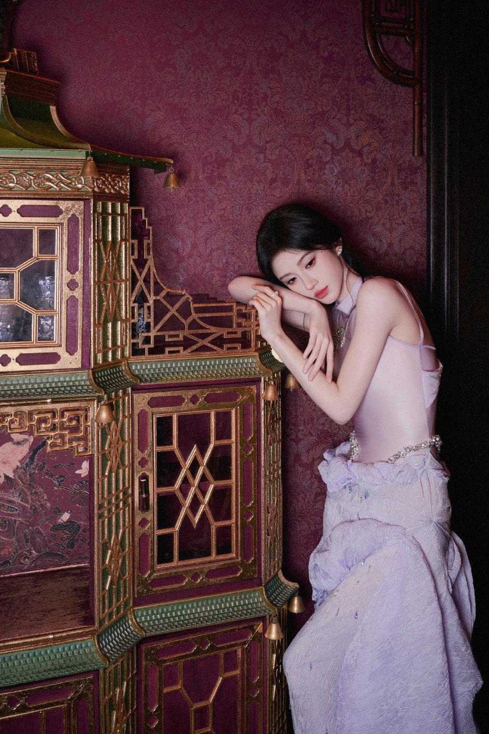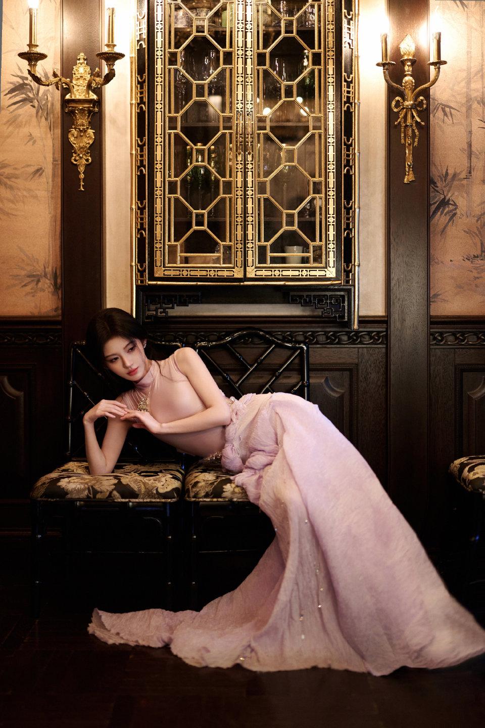 优雅复古风,粉色礼服与古典家具的完美结合鞠婧祎!!!