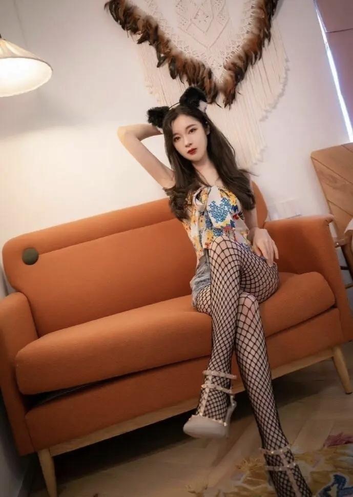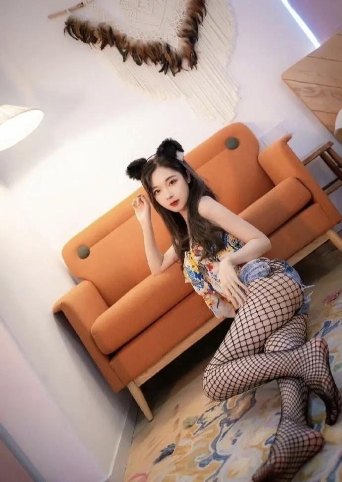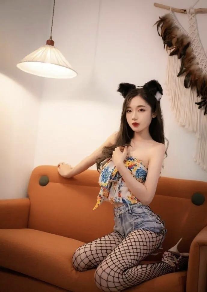 猫耳少女坐沙发,甜美可爱,快来打卡!🐱💕