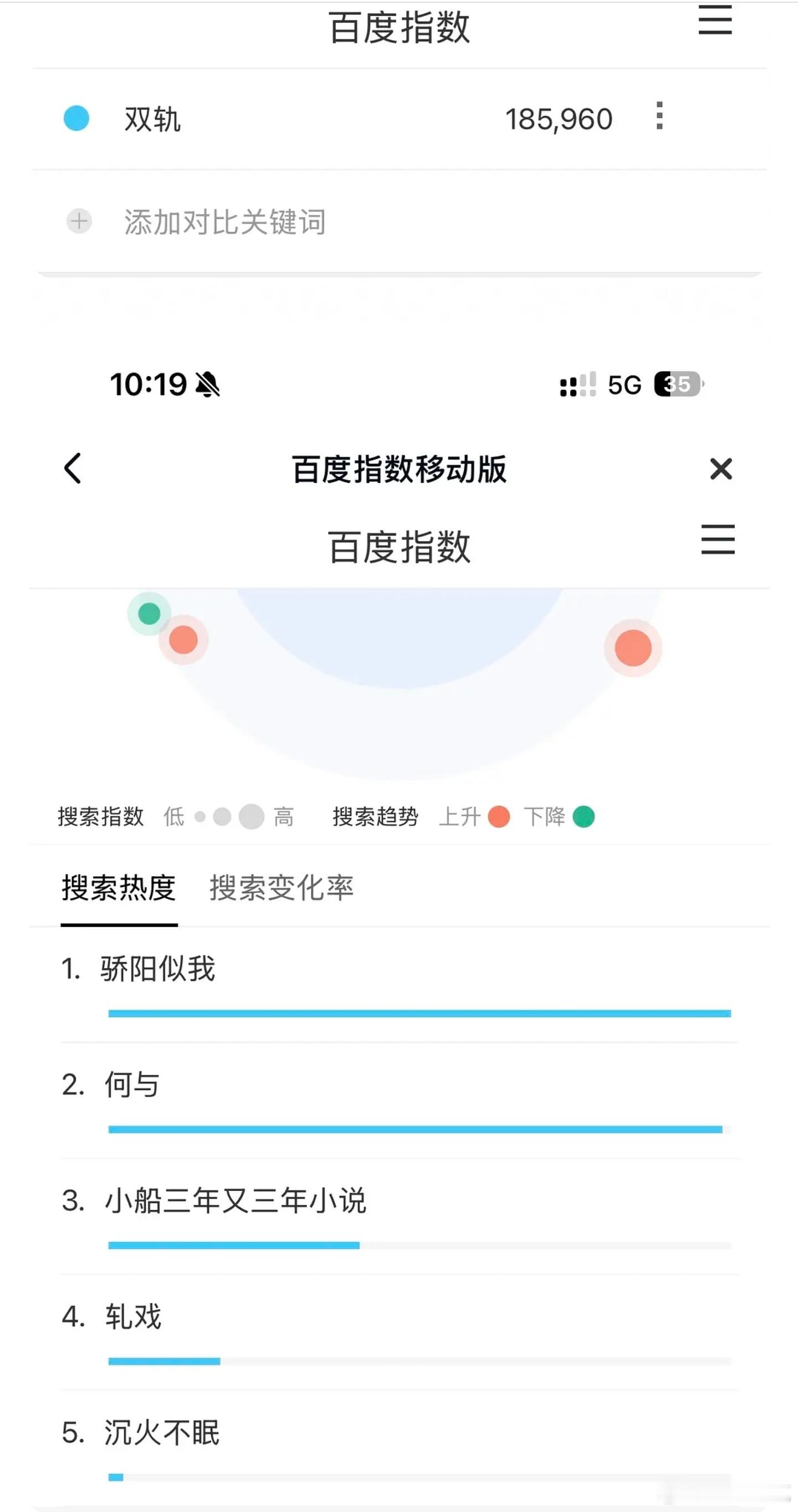 虞书欣何与双轨首播战报双轨热度已经涨不动了,第三天周日涨幅不到60,明天肯定进一