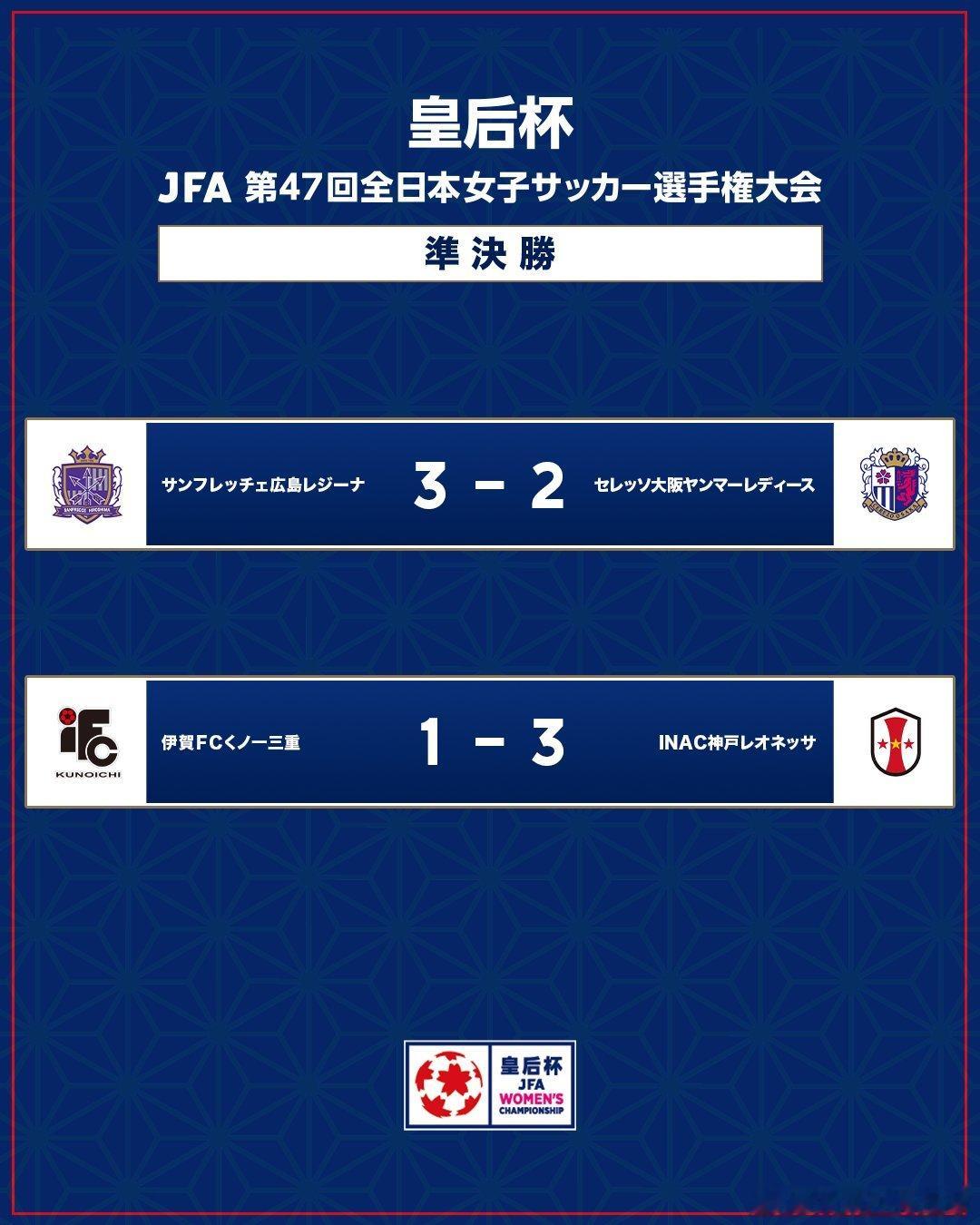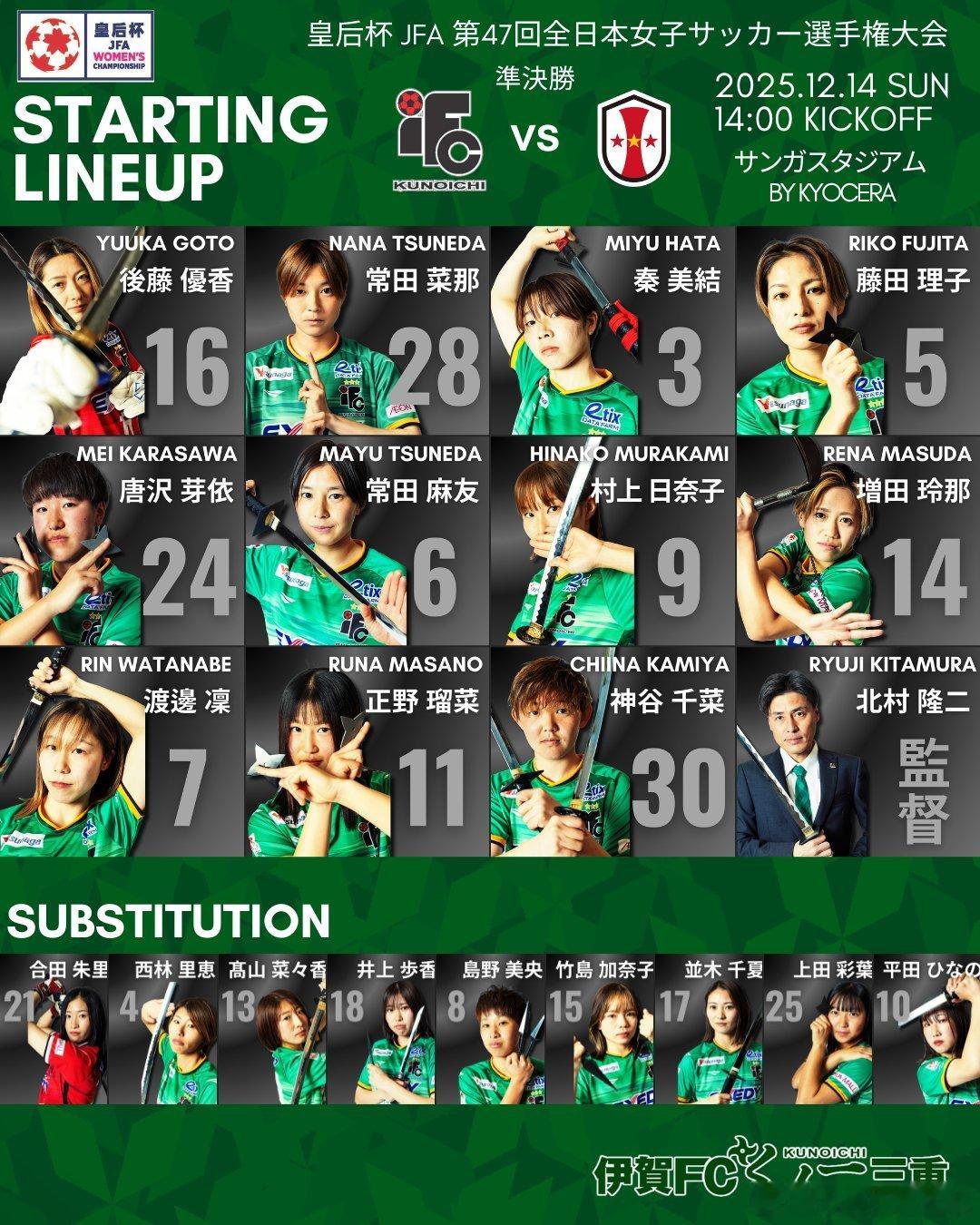 皇后杯半决赛第二场|伊賀FCくノ一三重1-3 INAC神戸Leonessa⚽️得点者50分 正野瑠菜(伊賀)75分 太田美月(神戸)85分 髙瀬愛実 (神戸)89分 吉田莉胡(神戸)
