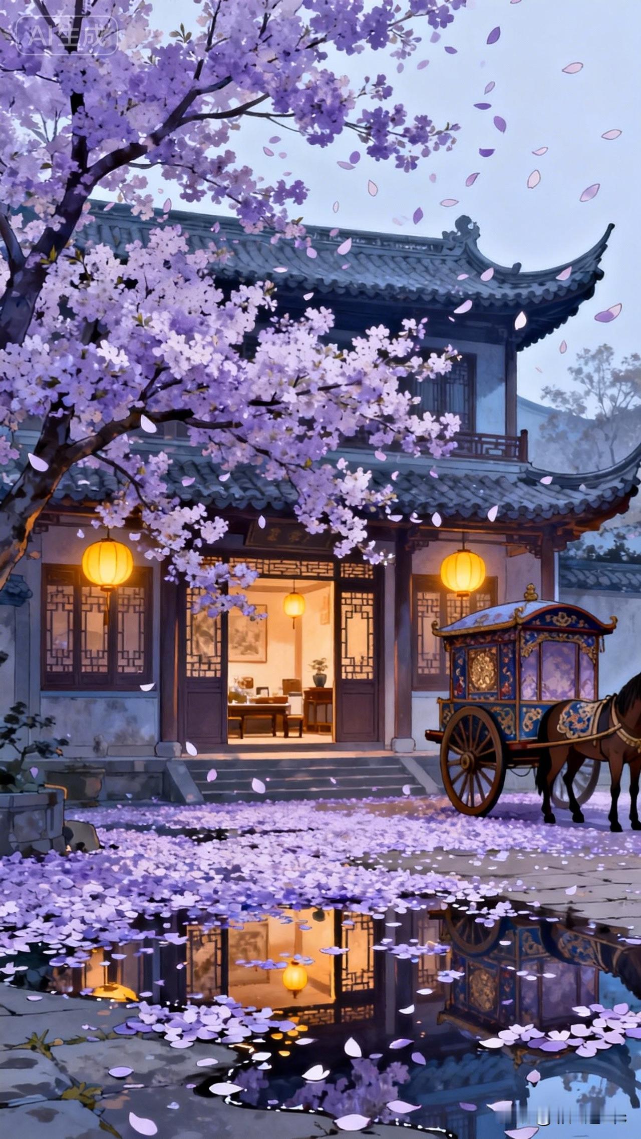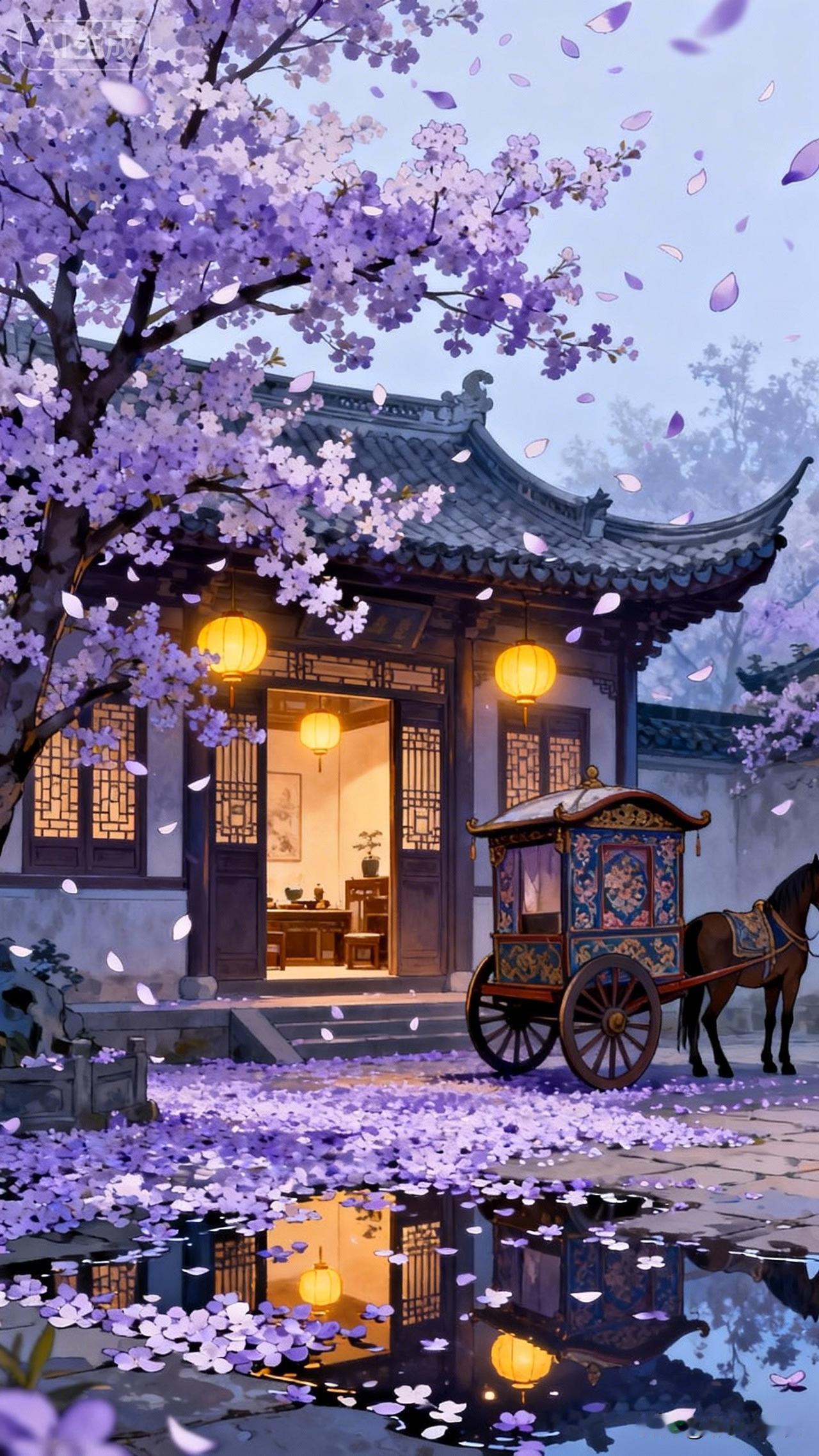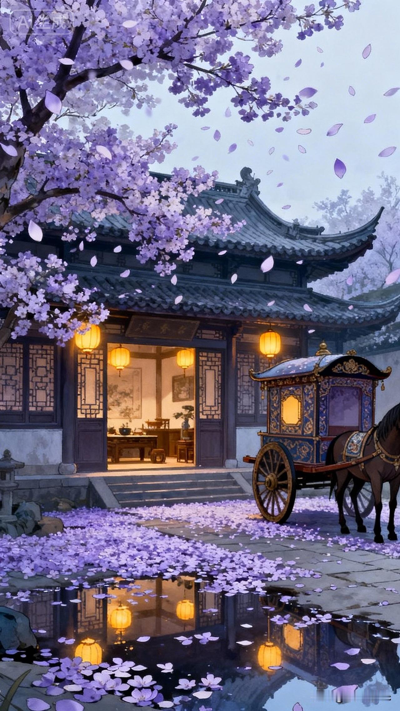 🌸紫霞仙子般的梦幻庭院,古风小院,唯美如画!🏡💕古风园林小院古风庭院设