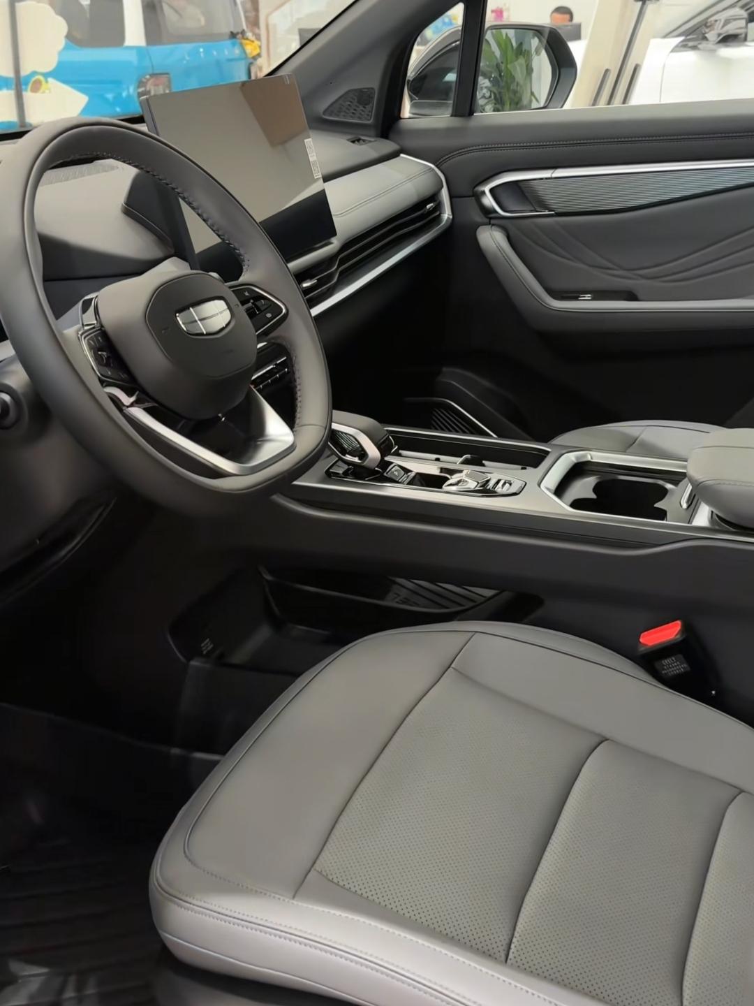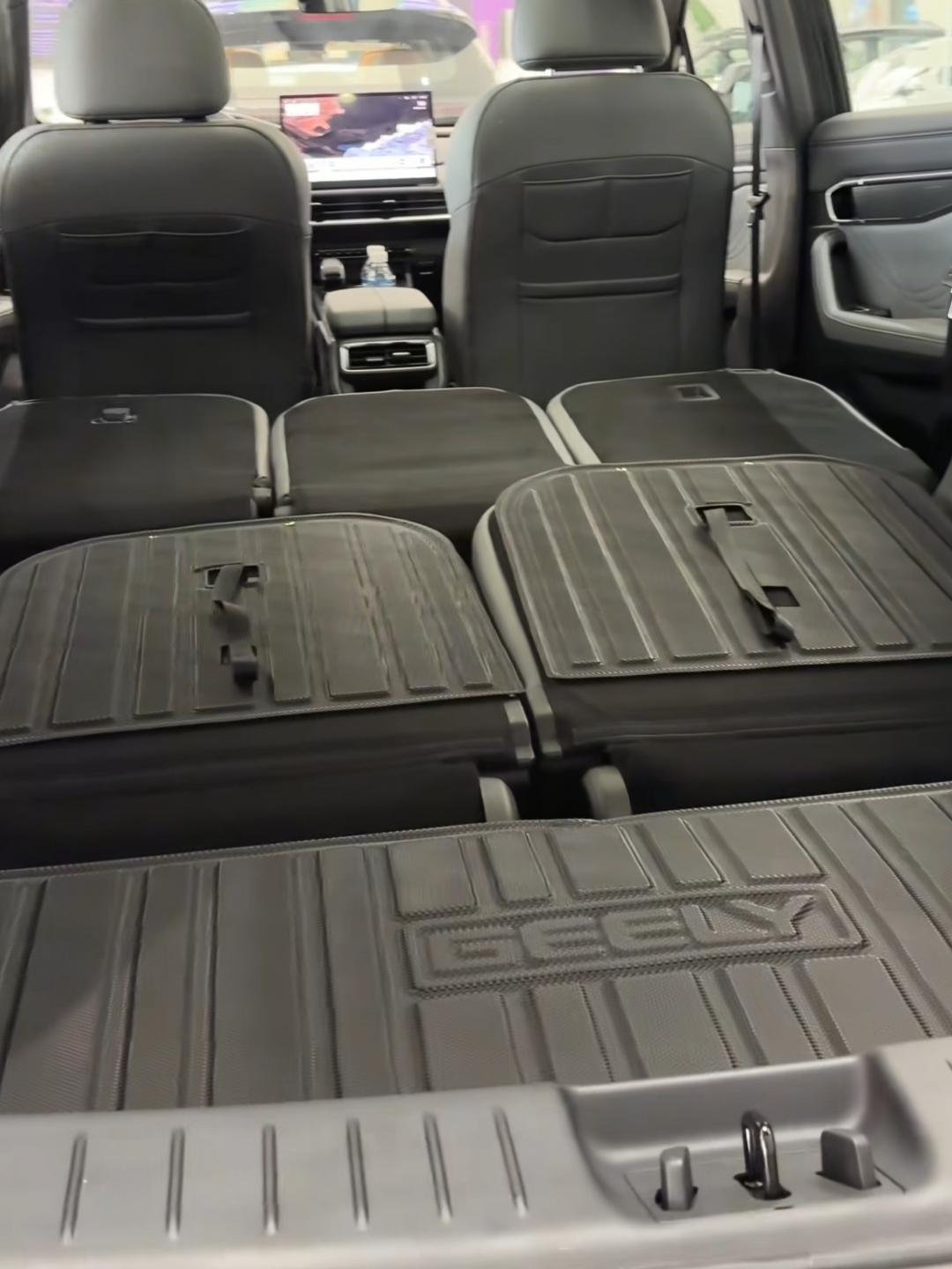 豪越L在吉利油车展厅里算是一台大车了,但对这台车了解的不多,所以趁着这次机会,一边体验一边学习。接下来说说我对豪越L这台车的整体感受和评价: 1️⃣外观: ❤️喜欢: 26款豪越同样采用的竖向镀铬条式的直瀑式八边形进气格栅,下方前杠的内凹造型和星越L比较像,也属于是家族化设计,增加了一些运动感,前脸用了很多亮银色饰条,显得这台车很有精气神。尾部的双出排气看着动力很强,运动感更强了。 💔不喜欢: 这台车整体看上去车身挑高,没有大车的沉稳,而且侧面C柱后的窗户尺寸有些小,离D柱还有一半的距离就收尾了,不够大气。 2️⃣内饰篇: 豪越L的内饰属实让我眼前一亮,可以说独树一帜。说说我的评价: ✅先说优点: ❤️优点①:空间大 体验的车是7座版,也是传统的2+3+2布局,但不同的是二排三个作为,1:1:1的三个座位乍一看像是大巴车的作为,每个人平权,中间也不再是将就了。前排座椅很宽,坐上去挺舒服。虽然车长不到4米9,但我身高176,前排调好,二排腿部空间一拳,后排还能有两三指。 ❤️优点②:配置够用 1台10万左右的中型SUV,重点就是能够满足家用。豪越l配备了前后座椅,通风加热按摩,智能车机,给了大天窗,360全景影像,L2辅助驾驶,车内氛围,灯电尾门,座椅也是用了皮质包裹。也算不错了的。 ❎再说缺点: 💔缺点①:质感一般 虽然座椅用了皮质包裹,仪表台,门板很多搪塑人造革,质感一般。特别是后排座椅三连坐的造型,确实看上去很别扭。而且放倒以后跟杂乱。甚至操纵杆质感也不算好。 💔缺点②:配置不平衡 想要后排通风加热只能选择六座或七座版本,五座版本配置偏低,而且五座版本后排也是三个座位的布局。即使是顶配才有手机无线充电也只是15瓦,比较鸡肋。 💔缺点③:满载后备箱太小 如果坐满六个人或七个人以后,后备箱剩下的空间很小,放几个背包都很吃力。根本没办法长途出行,所以如果真有6座或7座刚需,还得是选择五米以上车型。 📖总结归纳: 豪越L这台车的定位并不是豪华,舒适,而是简单的大空间,满足多人出行。而且价格还比较低,照顾了预算少的人群。但是想选这台车的话,一定要接受这个内饰风格。实际体验一下。而且尽量不要去选择2.0动力版本。【来自懂车帝车友圈】