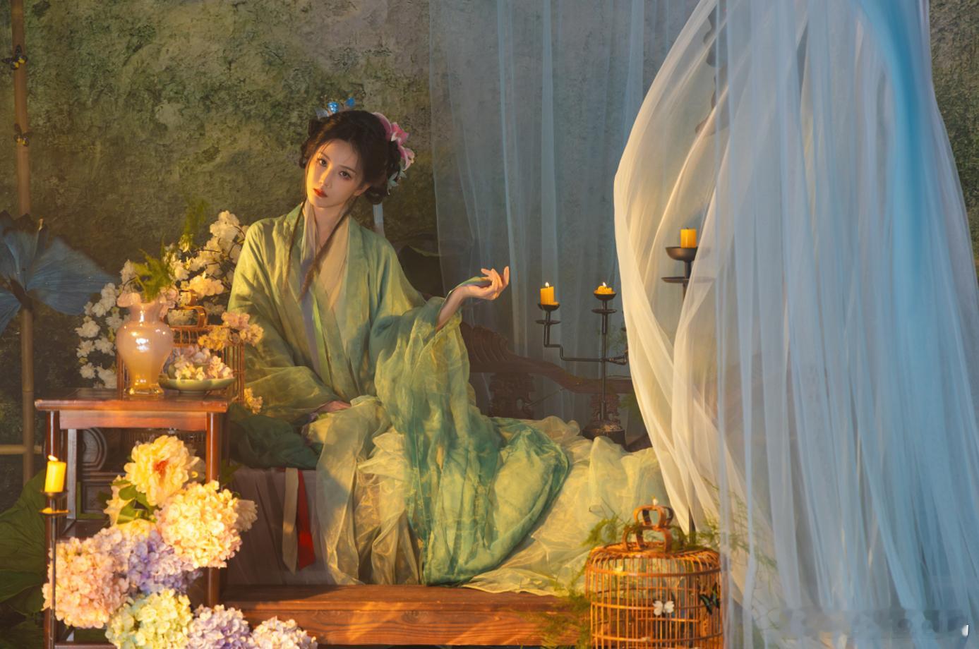 陈小纭身上的诡魅感这组古风拍摄中,陈小纭的红衣男装飒爽利落,青绿纱裙女装带着几分诡魅,“红男绿女” 的反差让画面更有层次,也暗合了《放蝶》的故事背景设定。