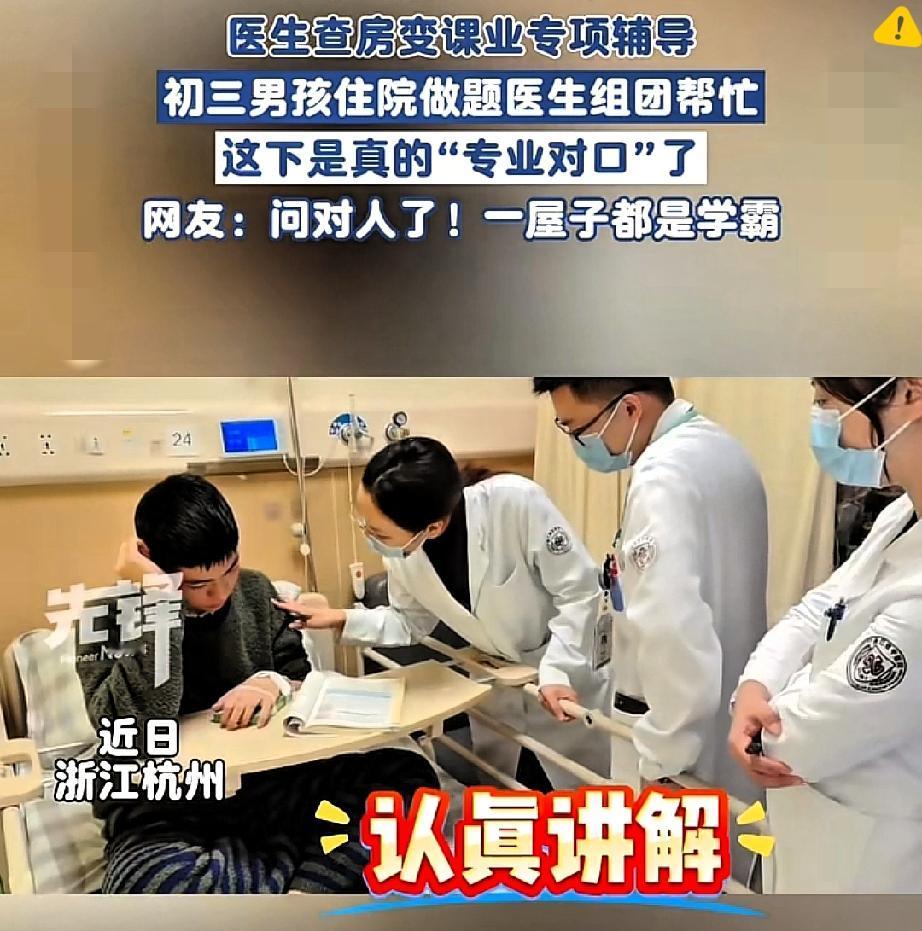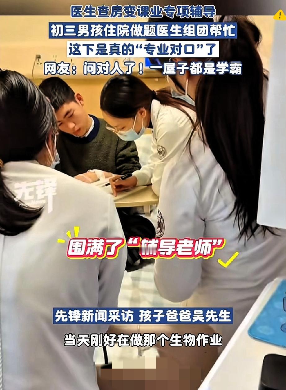 杭州初三男生住院问生物题,女医生秒变“金牌家教”! 用“A型血不能有抗A”的大白话讲透知识点,网友笑称“辅导费该算进住院费”,这波操作真暖到心坎里。 医生能快速解答不意外,医学专业本就以生物为基础,学霸级的医学生更是把这些知识刻进了骨子里。 但真正难得的,是她愿意放下忙碌,用初中生能听懂的方式“翻译”专业知识。 这不是简单的答疑,而是专业人士的共情与温柔—— 懂知识是本事,把复杂知识讲简单、愿意花时间分享才是格局。 你遇到过这种“宝藏陌生人”吗? 如果住院时遇到难题,你会大胆向医生求助吗?