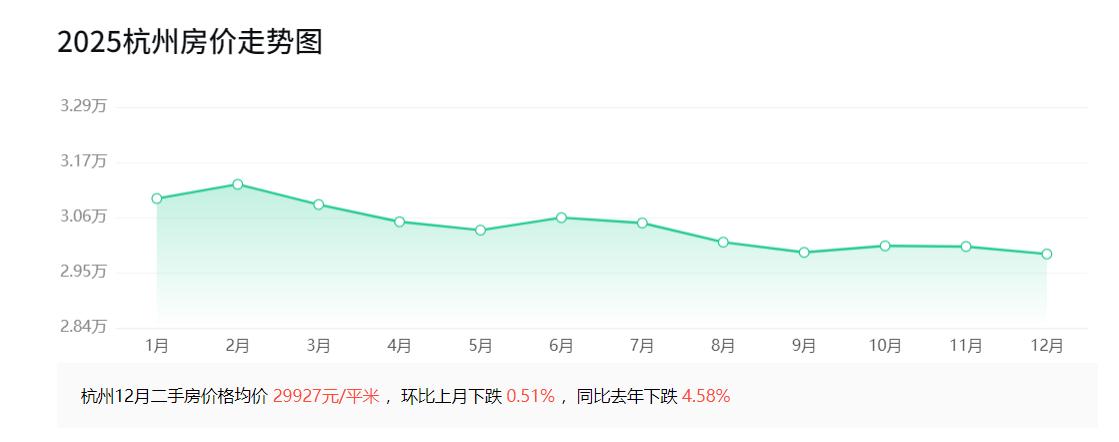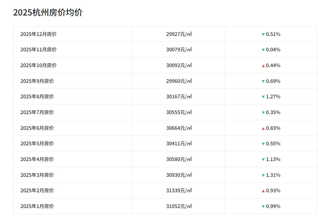 2015年11月,杭州二手房均价16195元; 2016年11月,杭州二手房均价21187元; 2017年11月,杭州二手房均价28562元; 2018年11月,杭州二手房均价28836元; 2019年11月,杭州二手房均价27155元; 2020年11月,杭州二手房均价27660元; 2021年11月,杭州二手房均价32571元; 2022年11月,杭州二手房均价36376元; 2023年11月,杭州二手房均价34207元; 2024年11月,杭州二手房均价31749元; 2025年11月,杭州二手房均价30079元。 回顾杭州十年间的房价,从2015年11月16195元,增长到2022年11月36376元,再下降到2025年11月30079元,十年间,房价整体上涨13884元。 环比来看,2025年11月杭州房价较10月的30092元微降13元,较同年1月的31052元下降973元。 整体上,2025年杭州二手房市场表现平稳,未出现大幅波动,但内部分化明显:核心区域房价仍保持韧性,部分板块甚至稳中有升;而远郊及非热点区域则面临一定下行压力。 刚刚过去的11月,你观察到的杭州楼市是怎样的?欢迎在评论区分享你的真实感受与见闻。
