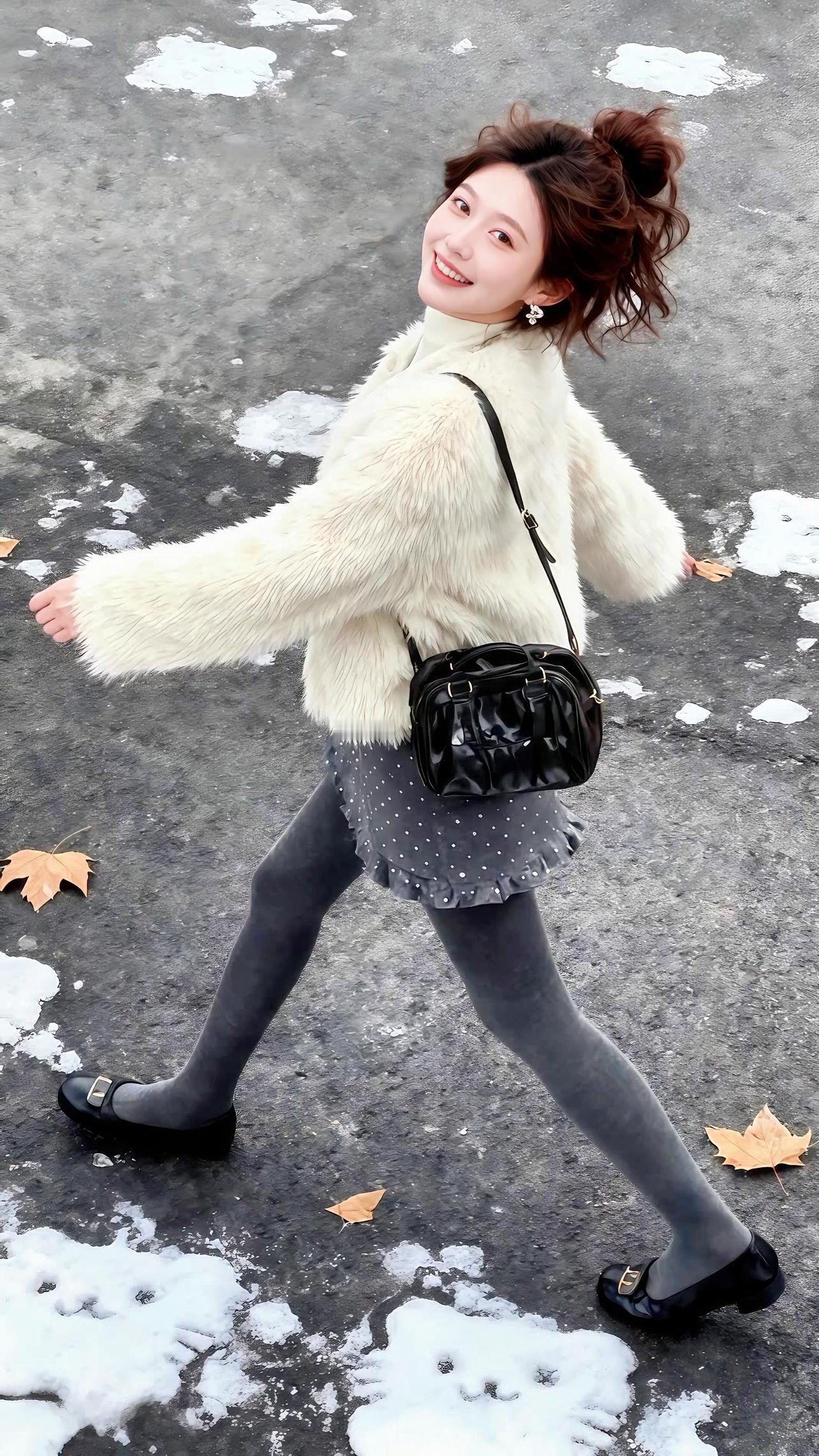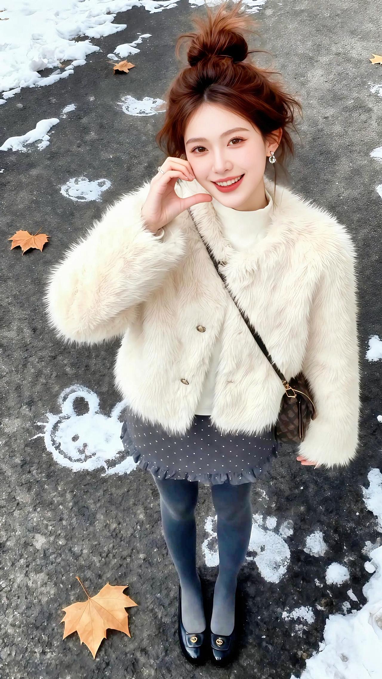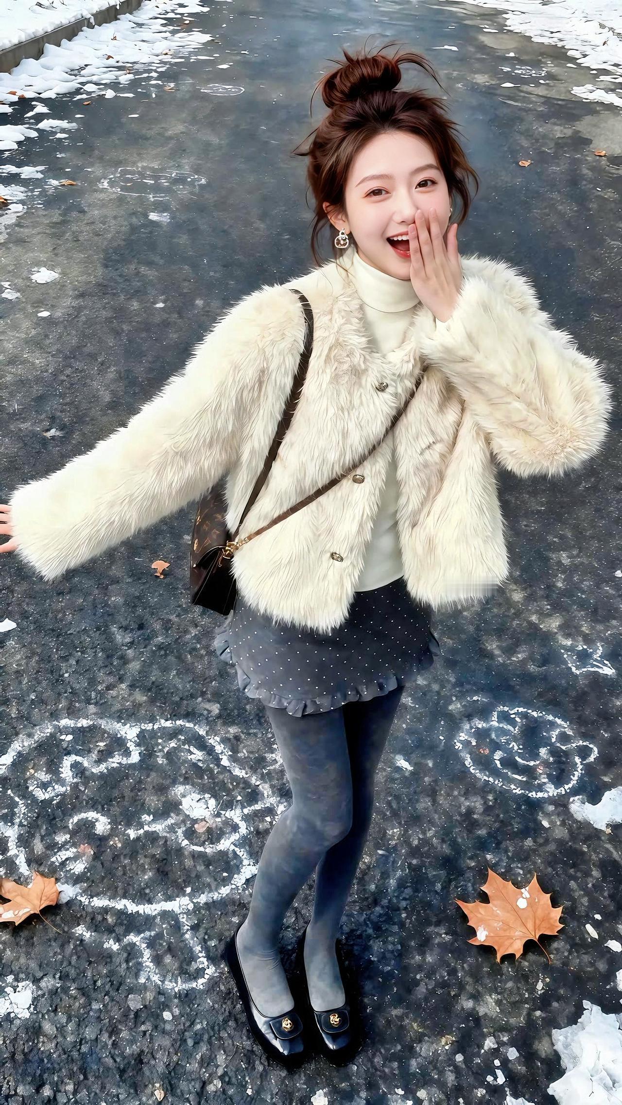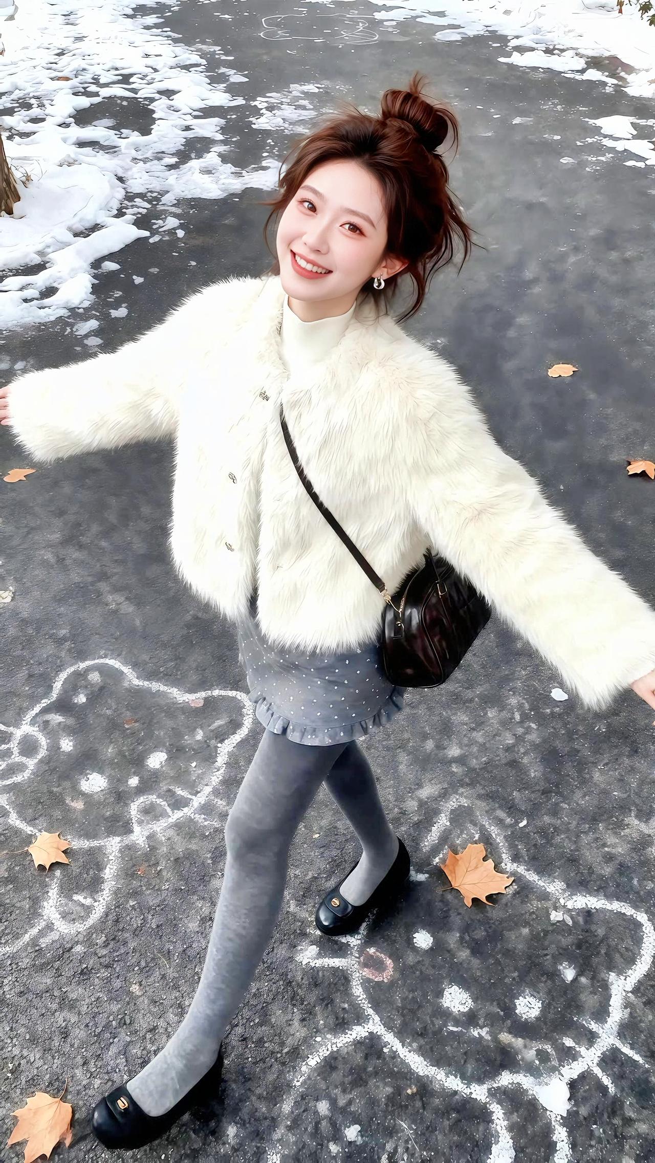 冬日暖阳下的甜美穿搭,毛茸茸外套搭配可爱小熊图案,元气满满!🌞👗👠
