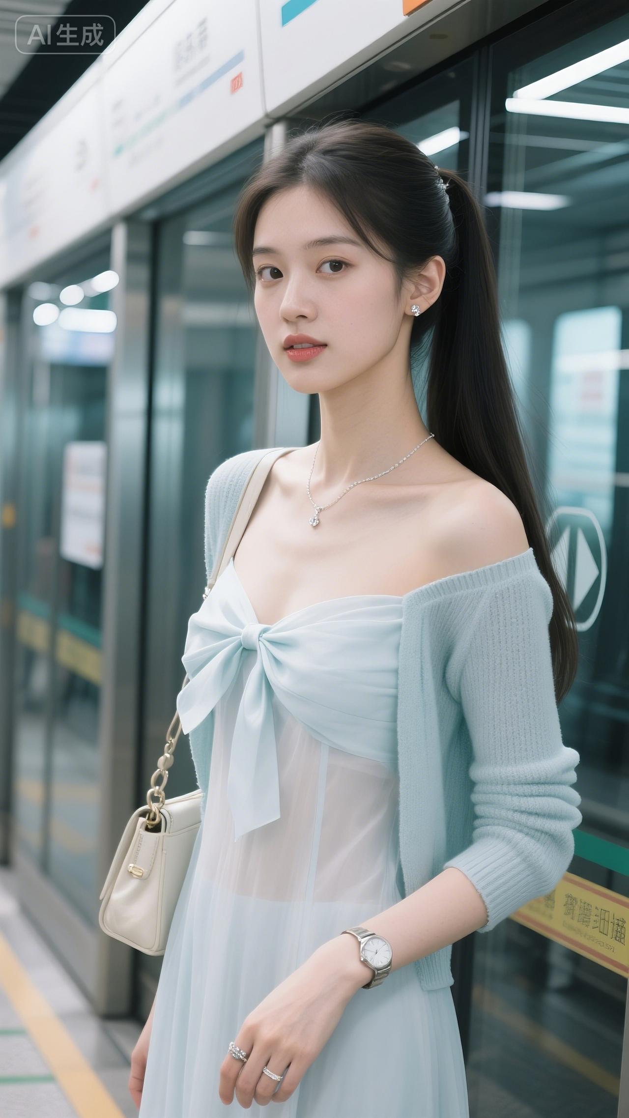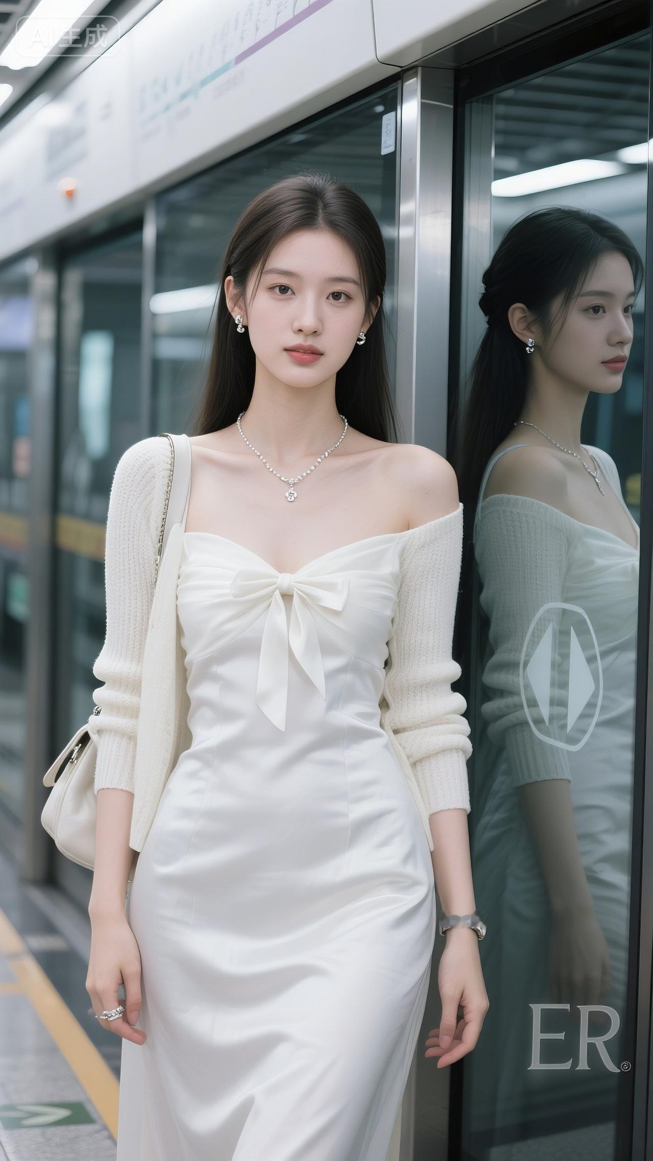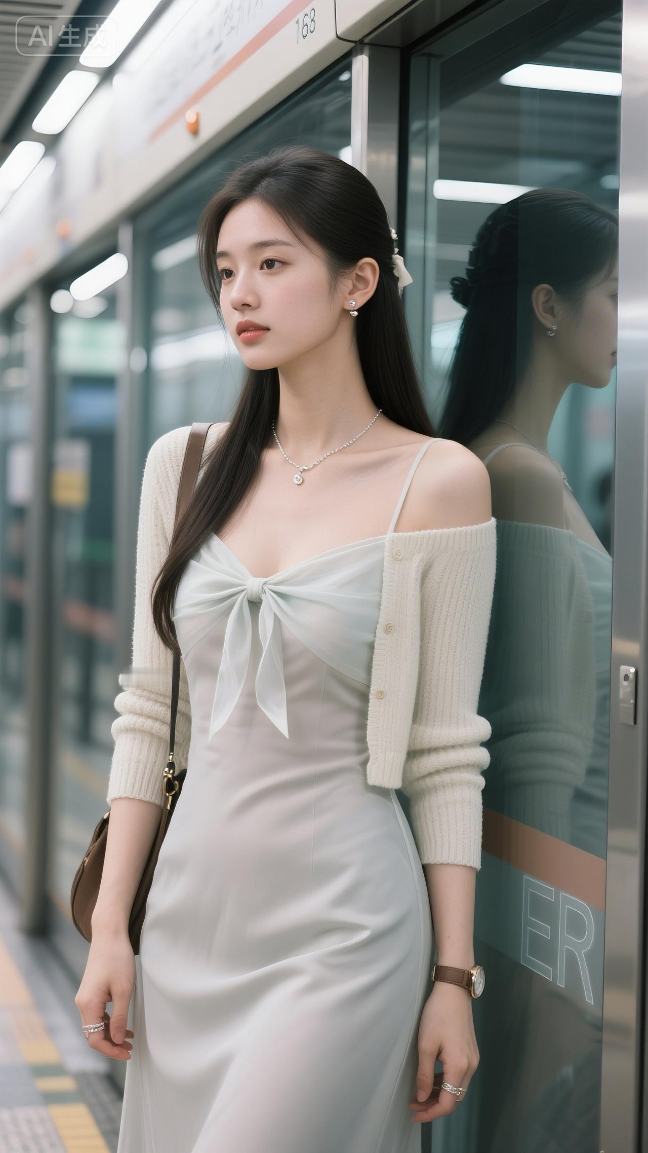 地铁窗映着柔光,白裙蝴蝶结裹着甜,针织衫轻搭肩头。她往站台一立,连通勤风都浸了温柔。 通勤穿搭 气质美人地铁穿搭女神