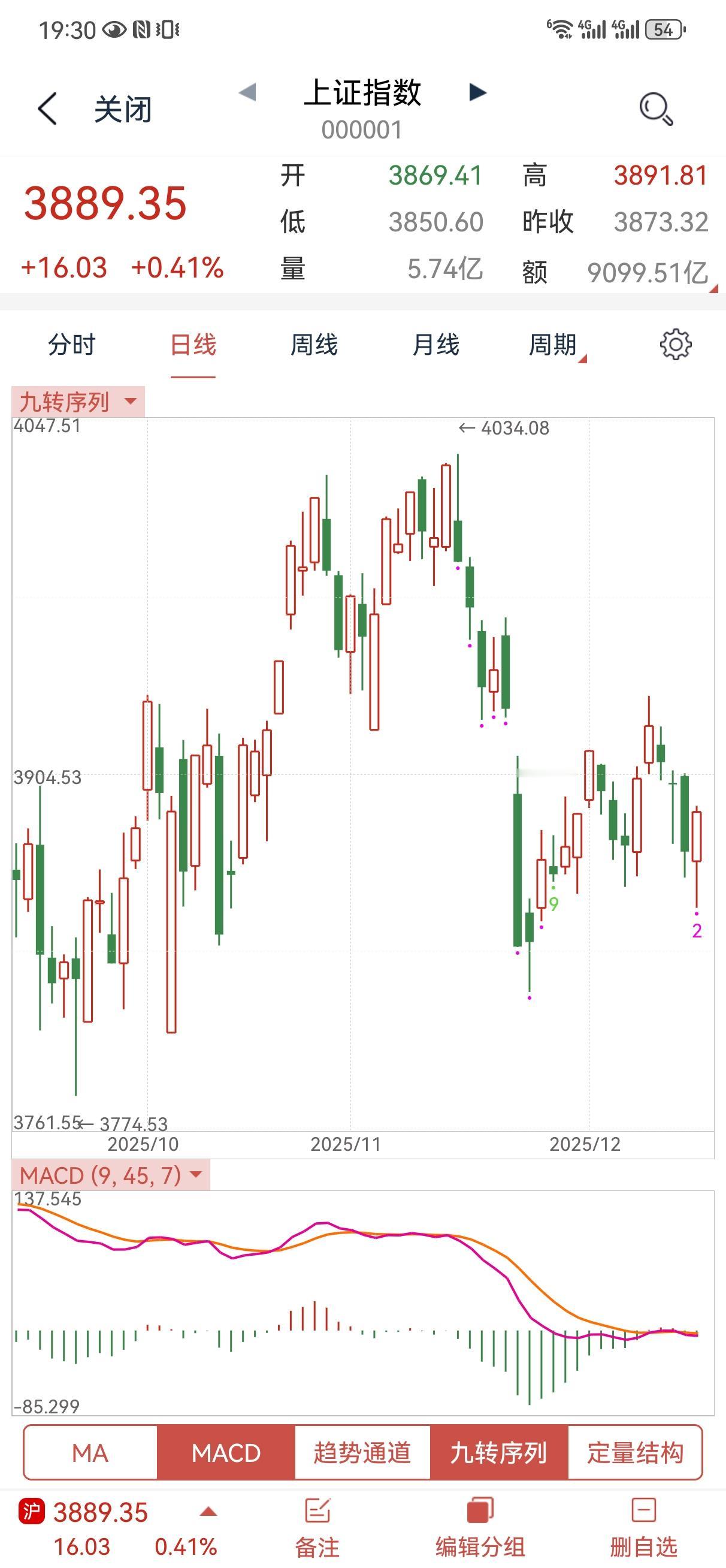 明天又要开盘了,说一下观点。这段时间以来各种利好消息不断,我觉得从某种角度看暂时改变了大盘的走势,也就是说我个人认为本来是要调整的,但是因为各种消息的刺激所以托着大盘走成了震荡模式,但这种情况不会一直持续下去,除非有重大事件出现,其他的因素最多只是暂时影响短期走势但无法改变趋势。我的观点一直很明确,大盘有调整需求和预期,十一月十二日开始的调整时间并不长,空间也不够,然后就一直在反弹,但是反弹的速度很慢,到现在也没收复一半,所以前段时间我就认为大盘会走第二次探底,到目前为止这个判断没有变化。对于十二月份剩下的交易时间我是看空的,当然这也要取决于速度,下跌的速度!至于空间,我觉得至少要到3800附近再看吧。如果是阴跌,那时间会比较长,如果是短平快,那说不定能提早结束调整,所以我不建议盲目操作,耐心等待即可,合适的时间做合适的事情才是最优选择。
