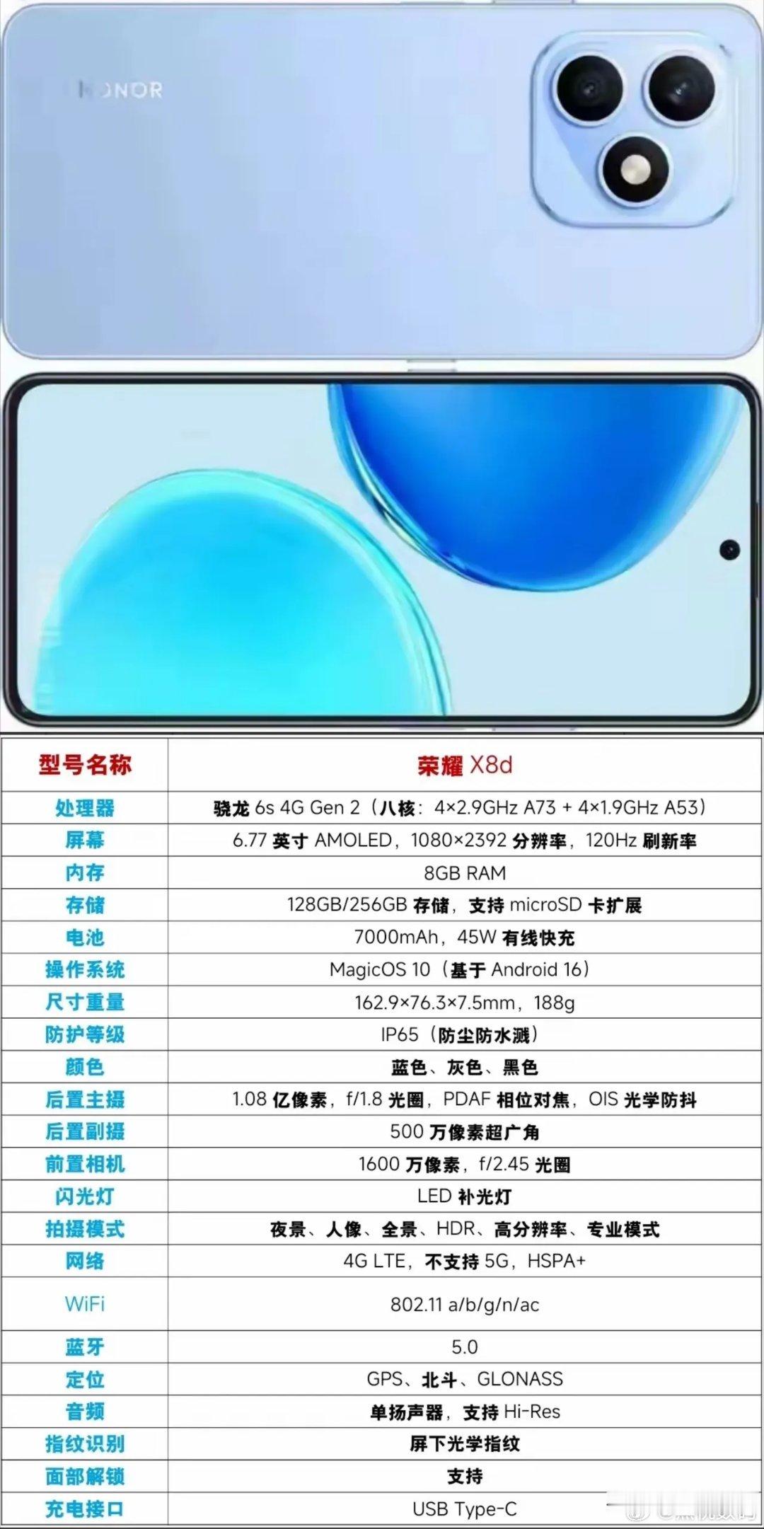 最近海外市场里,大电池手机是真的火,荣耀X8d更直接,不搞发布会这套,直接开卖。7000mAh的大电池一亮相,直接让老外看蒙了。有意思的是,这还是款4G手机——其实国外也不是都那么超前,不少地方还是都在用4G。核心亮点就是这配置:7000mAh大电池加一亿像素相机,直接刷新了老外对手机的认知,原来还能这么兼顾续航和拍照。