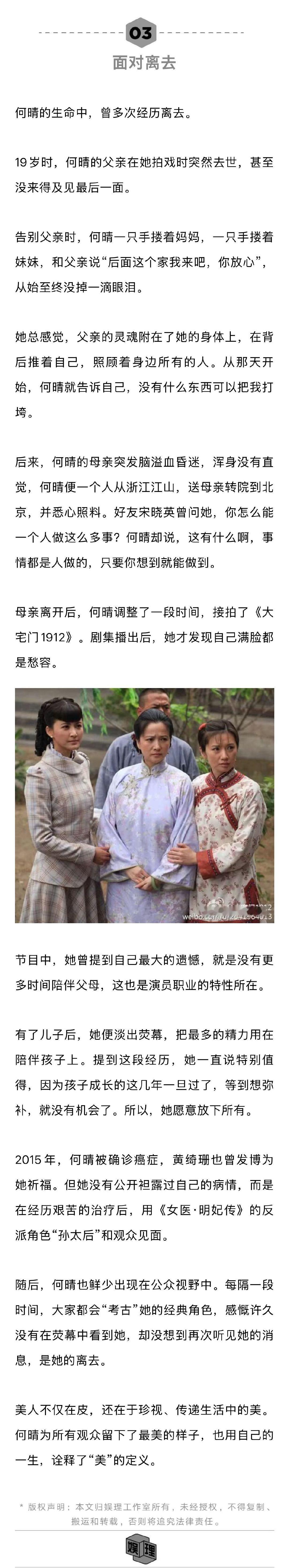 何晴劝黄绮珊别去整容 何晴和许亚军的家人都是好朋友 黄绮珊和何晴因电影《梦断南洋》相识,是多年的好朋友。黄绮珊出道早期,生活、感情都不顺利。除了日常的痛苦倾诉和陪伴外,何晴也会给到黄绮珊很多建议,比如经纪公司让黄绮珊去整容,何晴会劝她:“你千万别,这是上天给你的。你知道吗,当你唱歌的时候,你是全世界最美的女人。”娱理独家↓