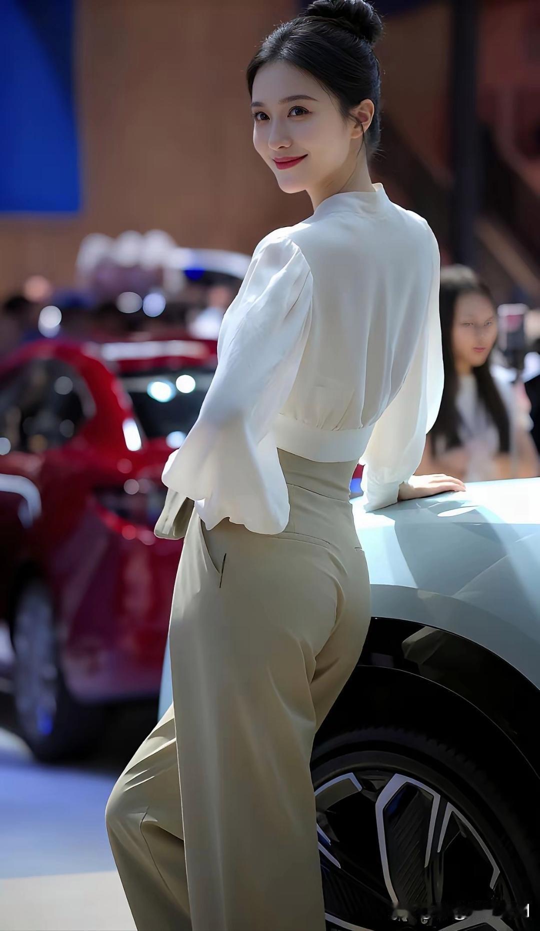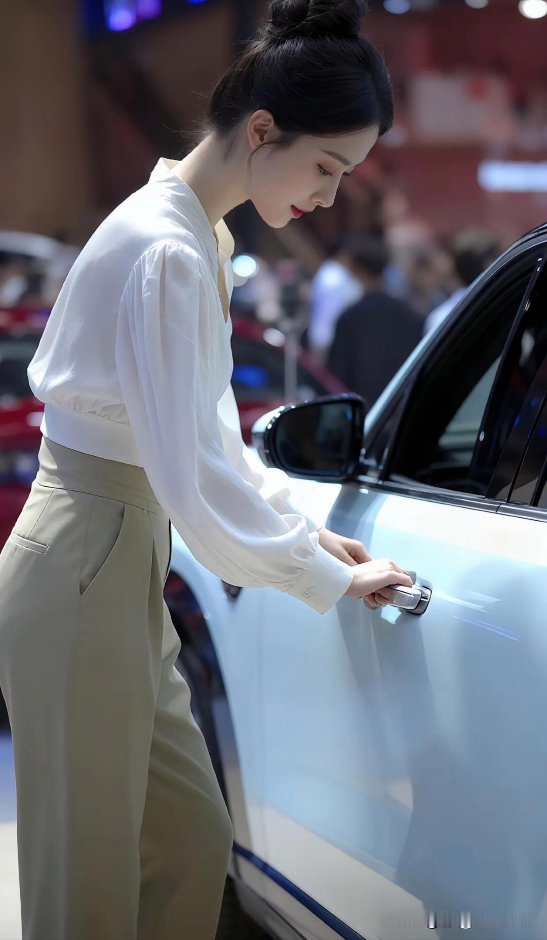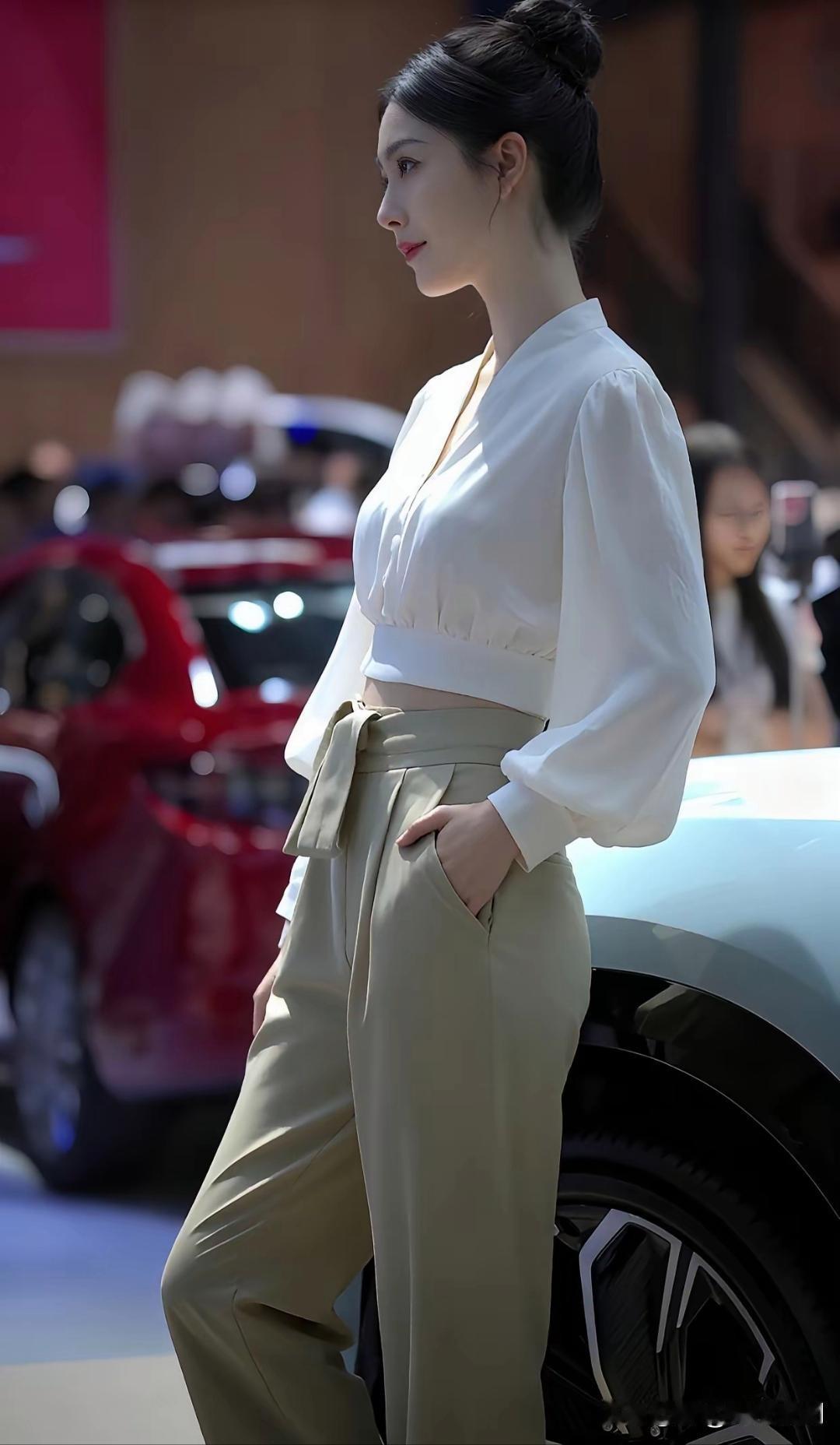 车展上的这位优雅车模真是赚足了眼球!白色衬衫搭配米色长裤,这看似简单的组合,却被她演绎出了满满的时尚感与自信。白色衬衫干净纯粹,给人一种清新脱俗的感觉,就像春日里的第一缕阳光。而米色长裤又增添了几分温柔与优雅,仿佛自带一种高级滤镜。 她站在车旁,身姿挺拔,每一个眼神、每一个动作都恰到好处,与旁边的车相得益彰。在一众艳丽的装扮中,她这种简约又大气的搭配反而脱颖而出,让人过目难忘。不得不说,时尚有时候真的不需要太多花里胡哨,简单就是王道!