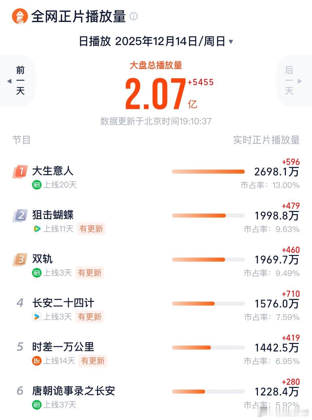 马上年末了,看看现在播的几部剧,除了已经结局的唐诡还保持着稳定走势。真的市占率现在能超过20%都是难事了,感觉明年还是会这样,一年只有几部头部爆款可以出,真的就再努力也没法破圈。观众吃不吃,跟你喊的响不响真的没任何关系。