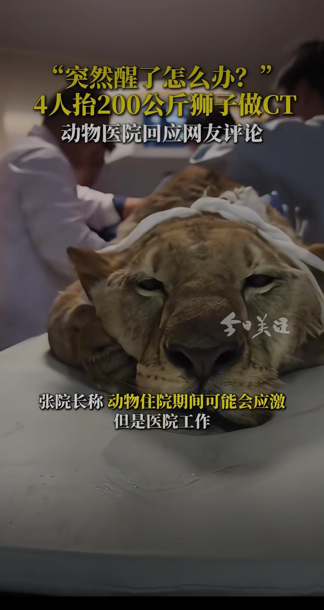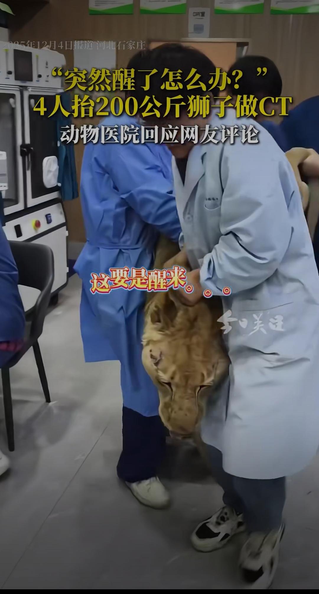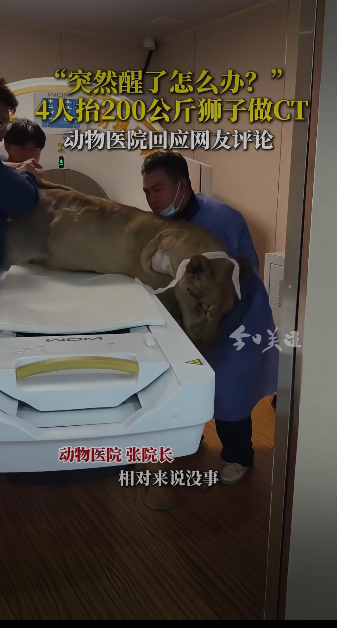 突然醒了怎么办?4人抬200公斤狮子做CT,动物医院回应背后藏着暖心真相动物麻醉 “这要是中途醒了,4个大哥不得慌到原地起飞?” 河北石家庄一家动物医院的视频火遍全网,画面里4名工作人员合力抬着200公斤的狮子往CT机上送,往日威风凛凛的“百兽之王”被麻醉后乖乖听话,反差感让网友直呼又惊又萌。 网友的担心并非多余:200公斤的成年狮子,爆发力足以瞬间掀翻重物,万一麻药失效,后果不堪设想。更有人好奇:给狮子做次CT得花多少钱?医院敢接这种“高危活”,到底有啥底气? 面对全网热议,动物医院张院长的回应让人安心又暖心。原来这只狮子患上了紧急肠梗阻,不及时通过CT精准诊断就会有生命危险,2万元治疗费涵盖了麻醉、检查、手术和一周住院护理,每一分都花在刀刃上。至于大家最关心的安全问题,张院长直言“完全不用担心”——医院采用专业复合麻醉技术,能确保检查全程狮子不会苏醒,再加上结实的笼具和工作人员的专业训练,连老虎、狗熊都接诊过,早已形成成熟的防护机制。 这场特殊的救治,戳中了无数人内心最柔软的地方。曾经我们觉得“弱肉强食”是自然法则,可如今看到人类为了拯救一头猛兽,动用精密医疗设备、组建专业团队,小心翼翼守护一条生命,才懂什么是真正的“万物有灵且平等”。从东莞警民接力救助受伤猫头鹰,到内蒙古民警给撞玻璃的小鸟疗伤,再到这次200公斤狮子的CT之旅,越来越多的案例证明,动物保护不再是口号,而是融入日常的行动。 有人说“花2万给狮子治病不值”,但在生命面前,从来没有值不值,只有愿不愿。这些医护人员抬着的不仅是200公斤的狮子,更是对生命的敬畏;医院的专业回应,不仅解答了网友疑问,更传递了人与动物和谐共处的温度。 你觉得给大型动物提供专业医疗服务有必要吗?如果遇到受伤的野生动物,你会第一时间求助吗?欢迎在评论区分享你的看法~