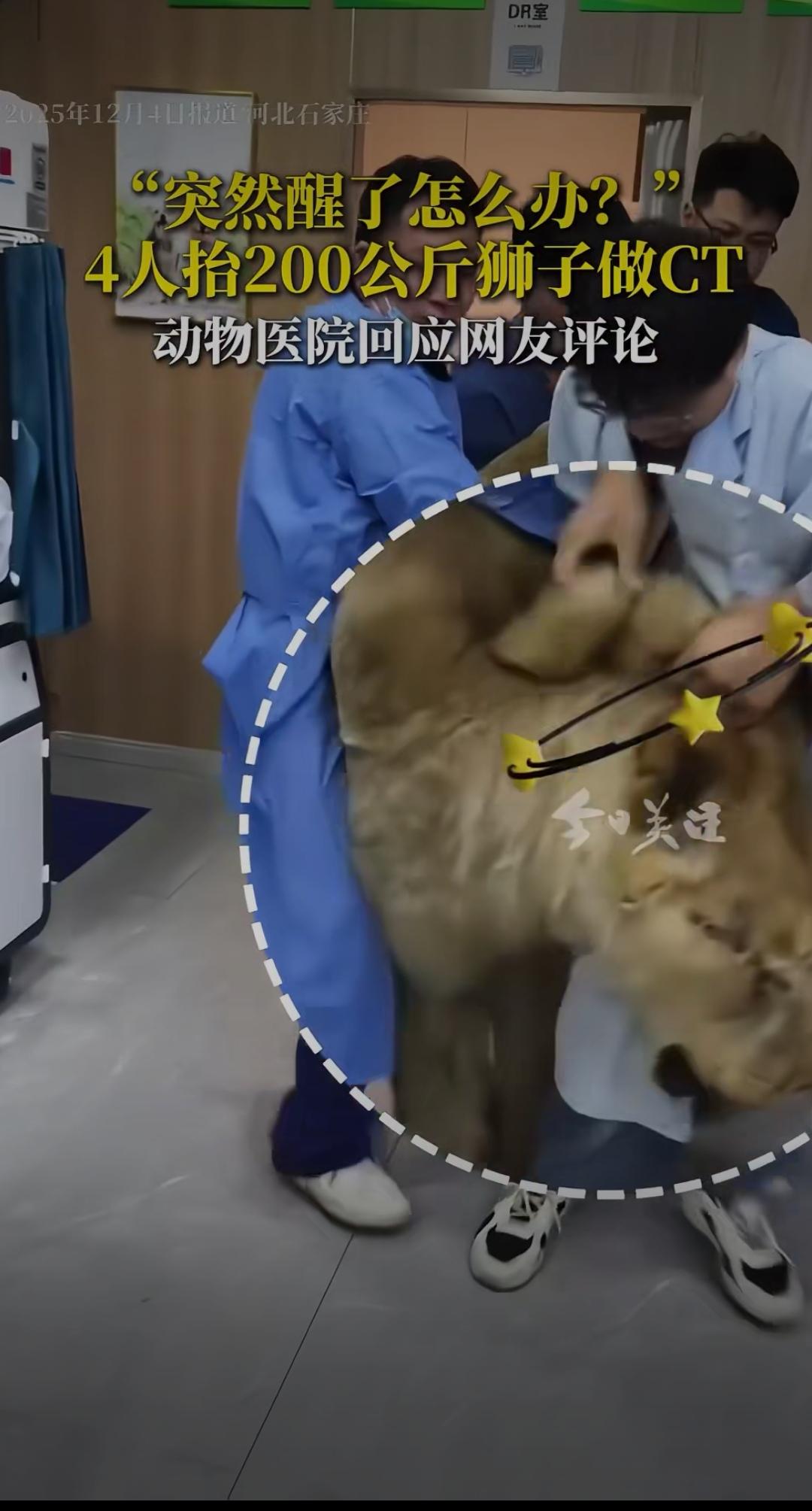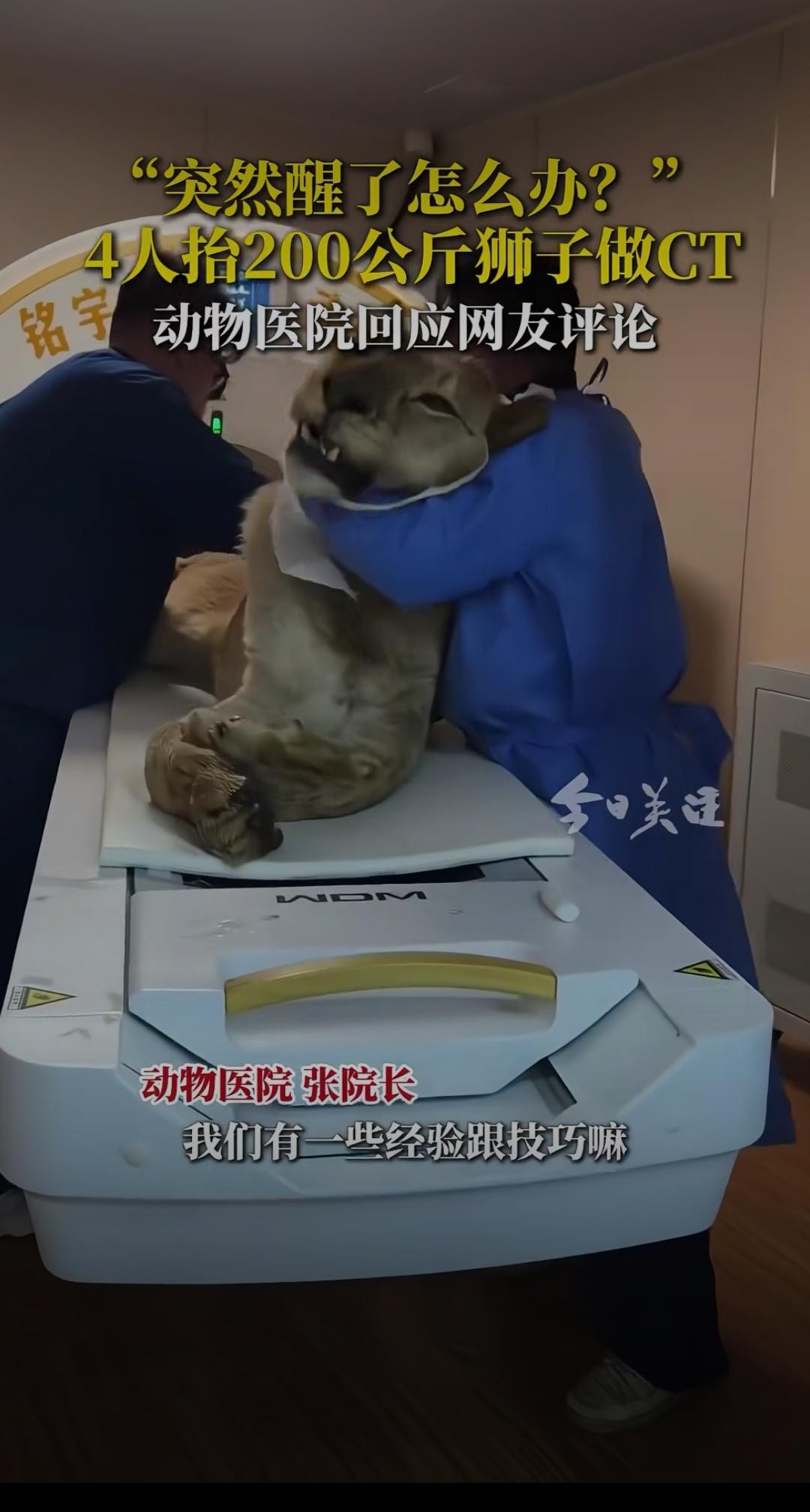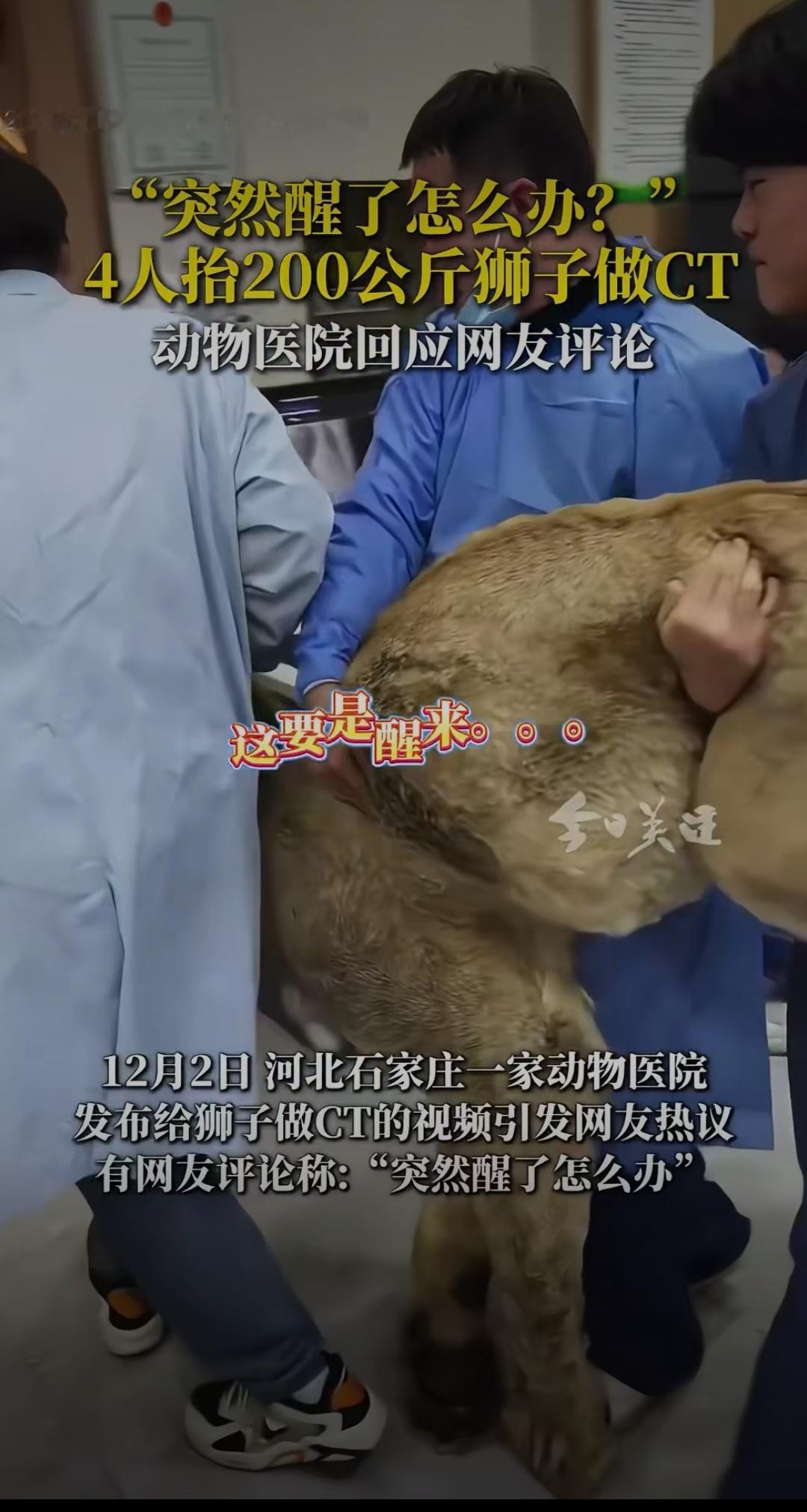 突然醒了怎么办?4人抬200公斤狮子做CT,动物医院回应背后藏着暖心真相动物麻醉 “这要是中途醒了,4个大哥不得慌到原地起飞?” 河北石家庄一家动物医院的视频火遍全网,画面里4名工作人员合力抬着200公斤的狮子往CT机上送,往日威风凛凛的“百兽之王”被麻醉后乖乖听话,反差感让网友直呼又惊又萌。 网友的担心并非多余:200公斤的成年狮子,爆发力足以瞬间掀翻重物,万一麻药失效,后果不堪设想。更有人好奇:给狮子做次CT得花多少钱?医院敢接这种“高危活”,到底有啥底气? 面对全网热议,动物医院张院长的回应让人安心又暖心。原来这只狮子患上了紧急肠梗阻,不及时通过CT精准诊断就会有生命危险,2万元治疗费涵盖了麻醉、检查、手术和一周住院护理,每一分都花在刀刃上。至于大家最关心的安全问题,张院长直言“完全不用担心”——医院采用专业复合麻醉技术,能确保检查全程狮子不会苏醒,再加上结实的笼具和工作人员的专业训练,连老虎、狗熊都接诊过,早已形成成熟的防护机制。 这场特殊的救治,戳中了无数人内心最柔软的地方。曾经我们觉得“弱肉强食”是自然法则,可如今看到人类为了拯救一头猛兽,动用精密医疗设备、组建专业团队,小心翼翼守护一条生命,才懂什么是真正的“万物有灵且平等”。从东莞警民接力救助受伤猫头鹰,到内蒙古民警给撞玻璃的小鸟疗伤,再到这次200公斤狮子的CT之旅,越来越多的案例证明,动物保护不再是口号,而是融入日常的行动。 有人说“花2万给狮子治病不值”,但在生命面前,从来没有值不值,只有愿不愿。这些医护人员抬着的不仅是200公斤的狮子,更是对生命的敬畏;医院的专业回应,不仅解答了网友疑问,更传递了人与动物和谐共处的温度。 你觉得给大型动物提供专业医疗服务有必要吗?如果遇到受伤的野生动物,你会第一时间求助吗?欢迎在评论区分享你的看法~