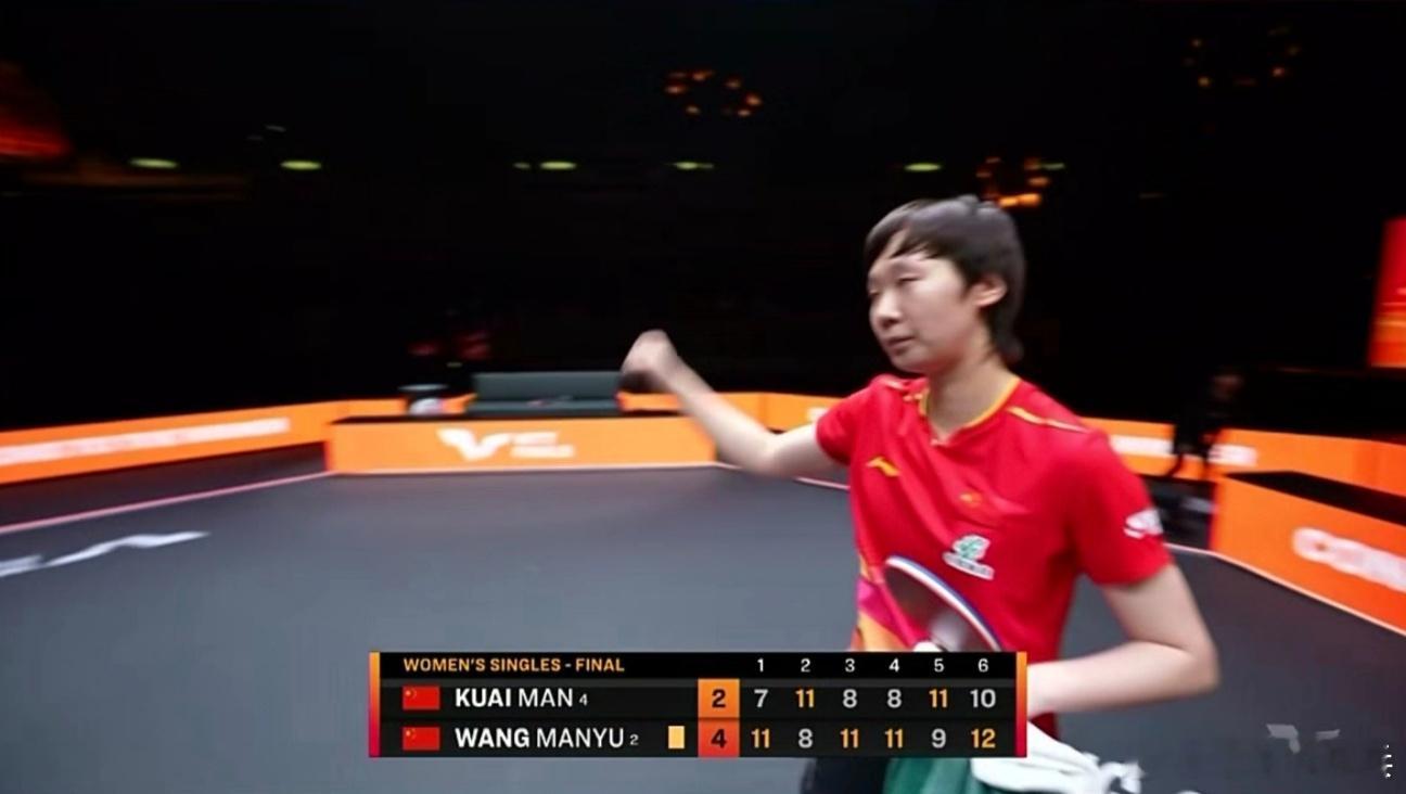王曼昱4比2蒯曼 2025WTT香港总决赛女单决赛,王曼昱4比2战胜蒯曼夺得女单冠军,蒯曼获得亚军,比分:11-7,8-11,11-8,11-8,9-11,12-10。在没有兼项影响只准备单打情况下选手确实有更好的发挥,这也是王曼昱继2024年再次卫冕总决赛女单冠军,祝贺!