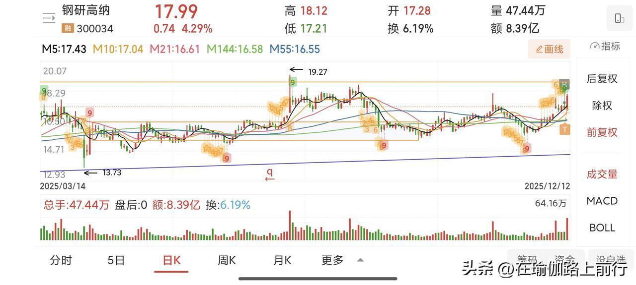 复盘钢研高N(不推票不荐票) 图一季线,低位量比高位量大,且回踩55月线。 图二