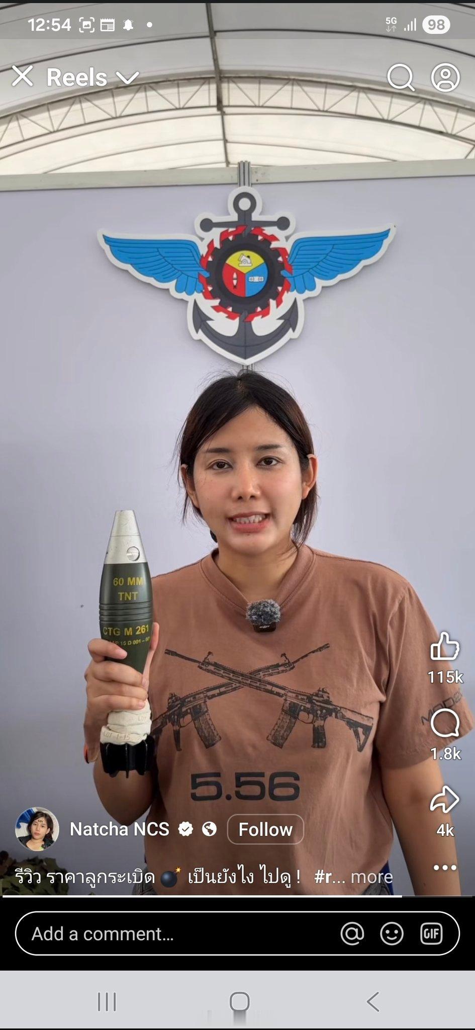 泰柬冲突 拥有87万Facebook粉丝的,泰国社交媒体网红Natcha NCS,平时主要测评普通产品和美食,如今却在推销泰国本地制造的迫击炮弹海外新鲜事 战争的气息感染了每一个人。。。。。