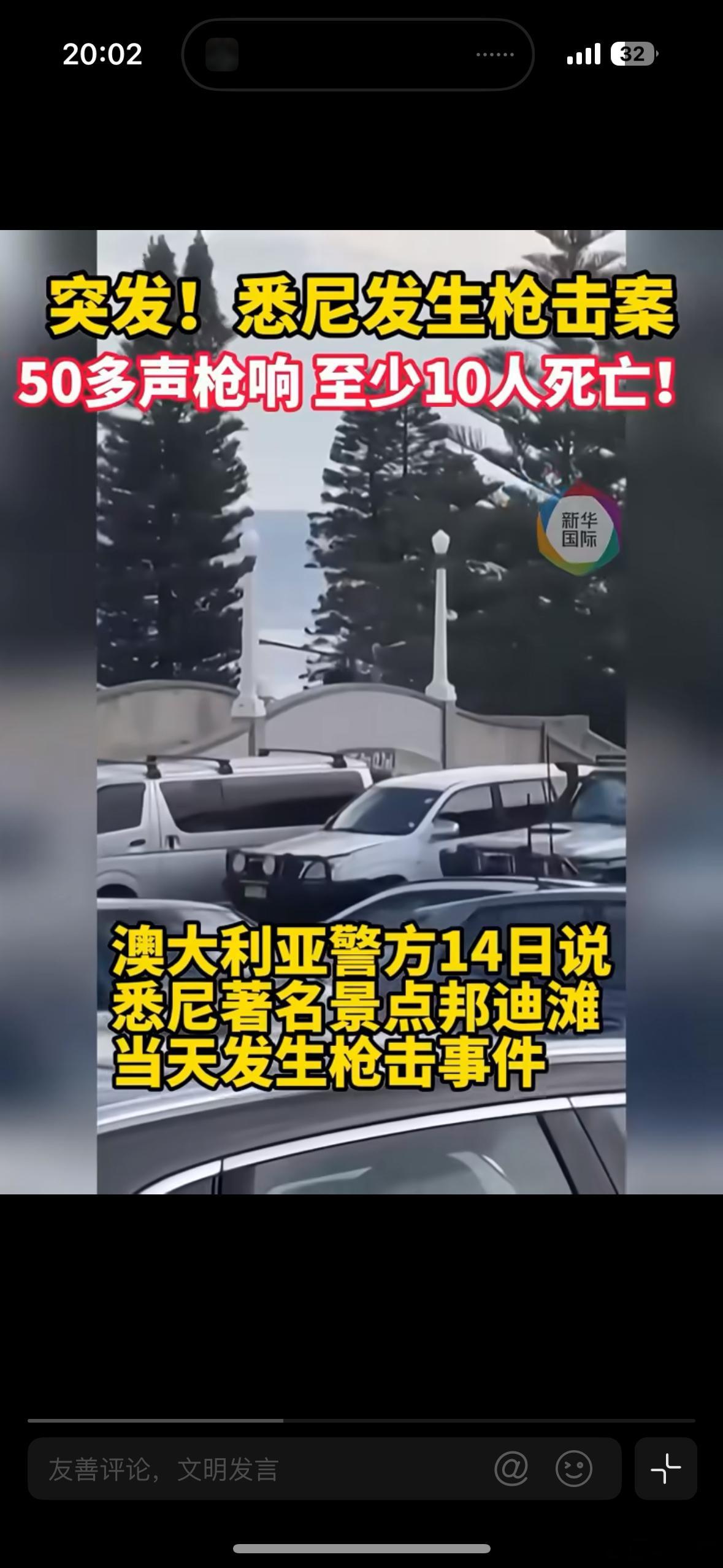 悉尼邦迪滩枪击事件10人死亡和平每一天,自由美利…… 诶不对,走错片场了话说澳洲