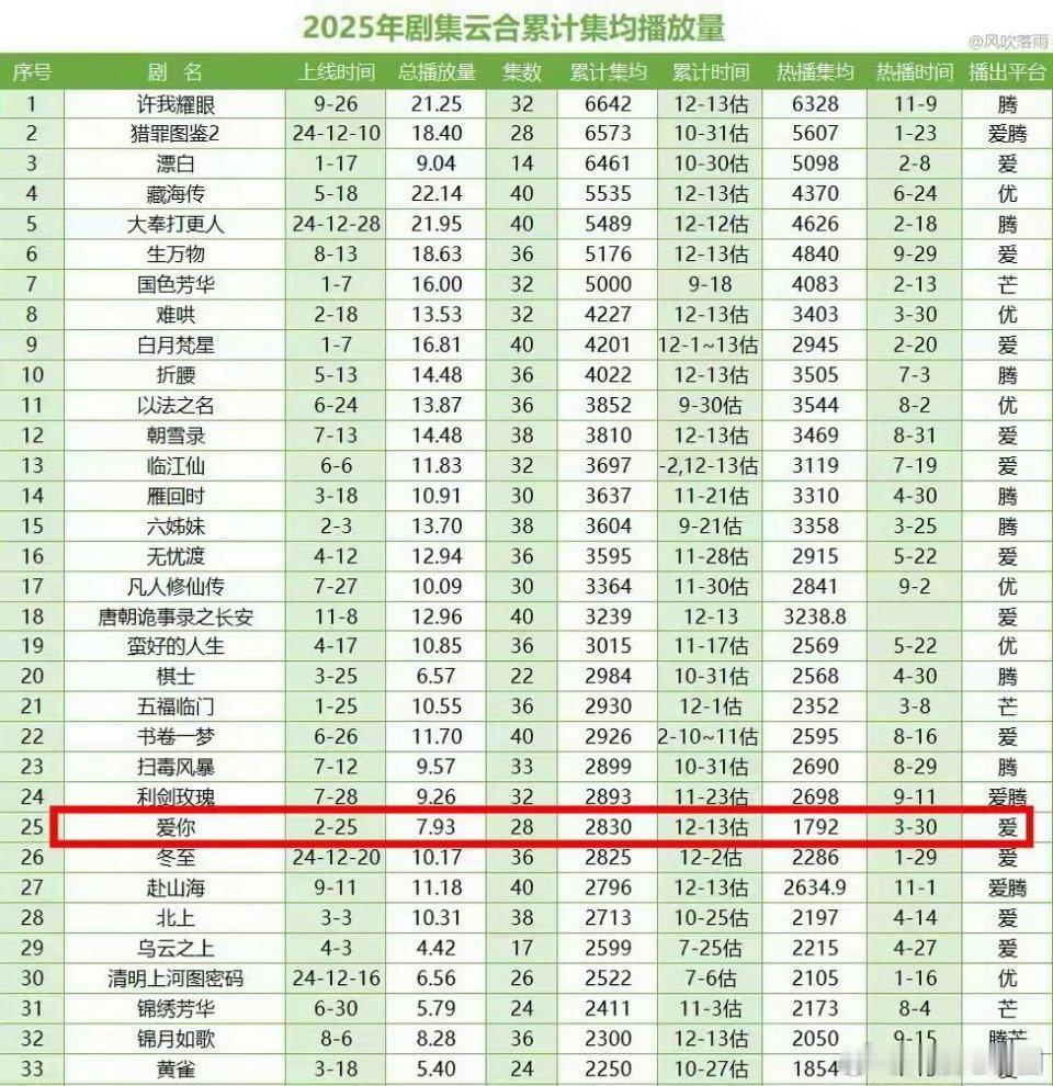 张凌赫《爱你》登顶爱奇艺2025现偶集均第1️⃣!