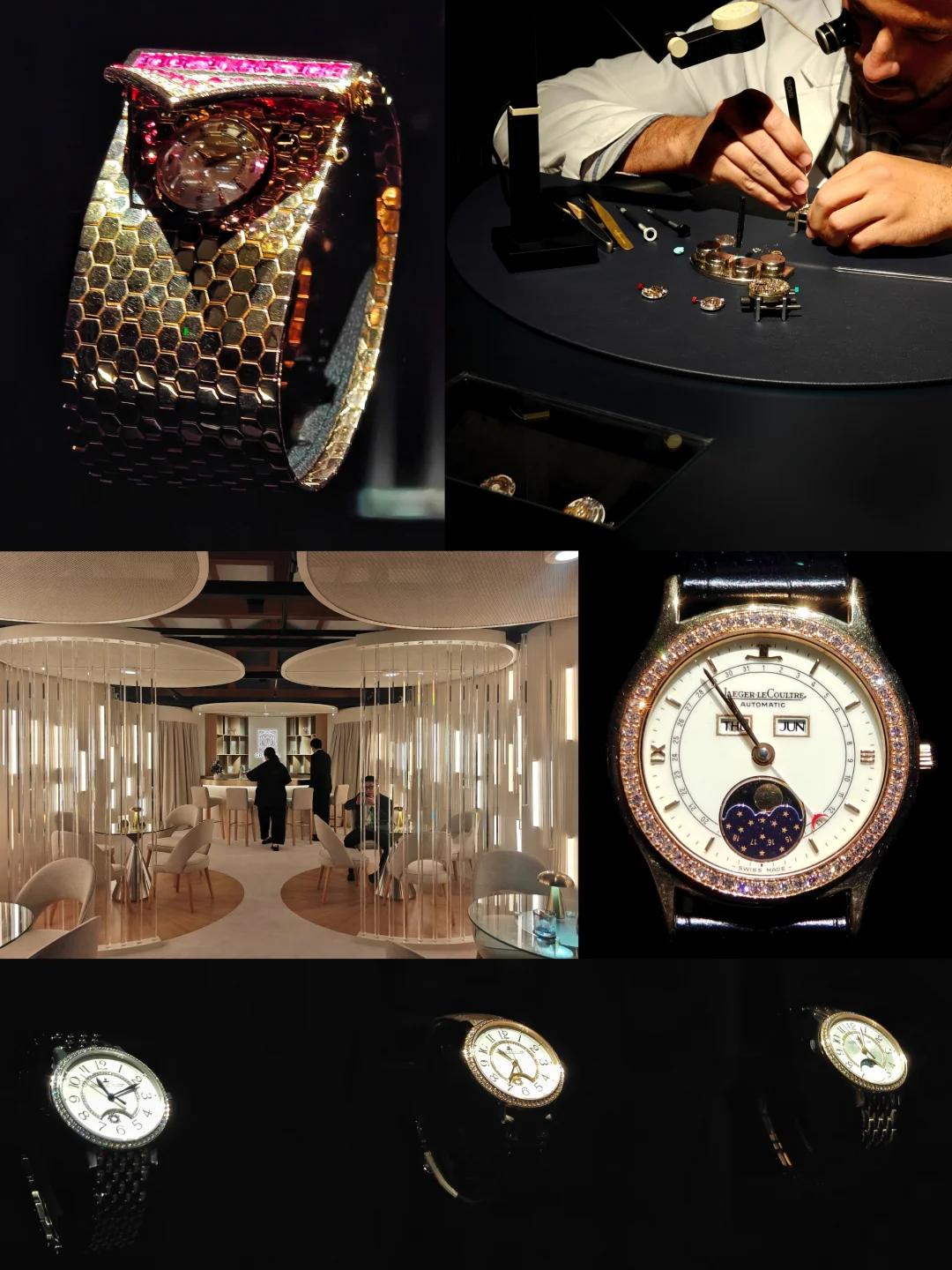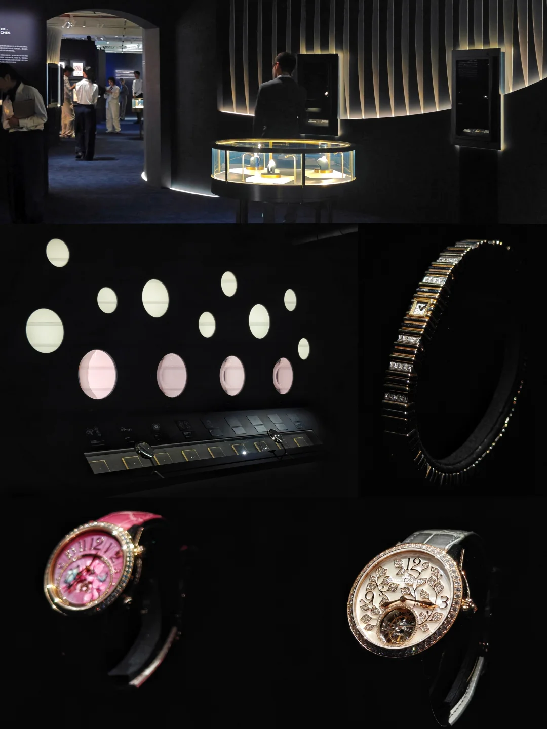 ⌚️体验方面,这一类展都差不多,讲解都比较亲切主动,想了解每款表背后更多的故事就跟着听一下。比较拉胯的是1/3的手表都不在展位上,可能因为今天是第一天,拿给vip客户试戴去了,这个观感蛮差的。另外因为光线较暗,几处出入口都有个10厘米左右的小斜坡落差,特别容易绊到或者踩空,虽然工作人员有在旁边提醒,但我看到至少两三次包括他们自己人都有绊到,在展陈上这其实是不合格的,没有明确标识提醒,为了整体美观性牺牲了安全性。