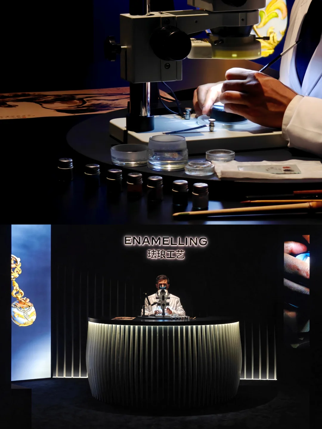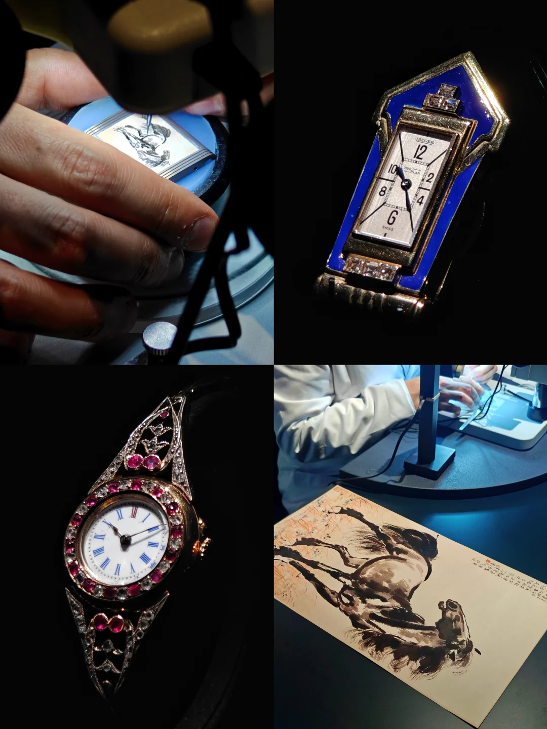 🔬大师现场做珐琅微绘(今天看到画的是徐悲鸿的马)、宝石镶嵌。还有亲手装机芯体验,这个我没看到怎么参与,据说还送纪念徽章,建议现场寻问下工作人员。