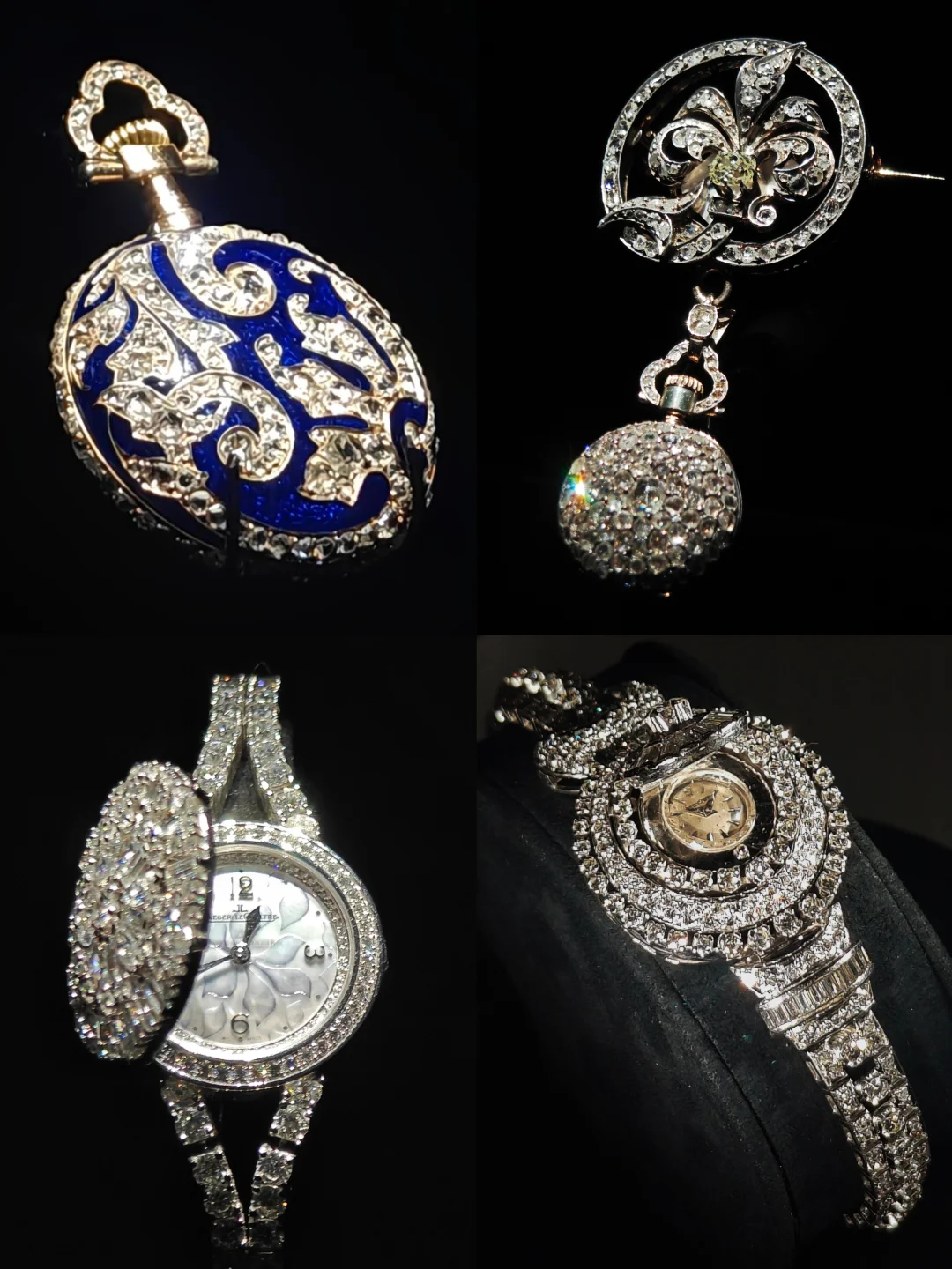 1⃣️传统时代:1890年蓝珐琅怀表,怀表变珠宝(吊坠/胸针),藏着旧时女性的优雅表达