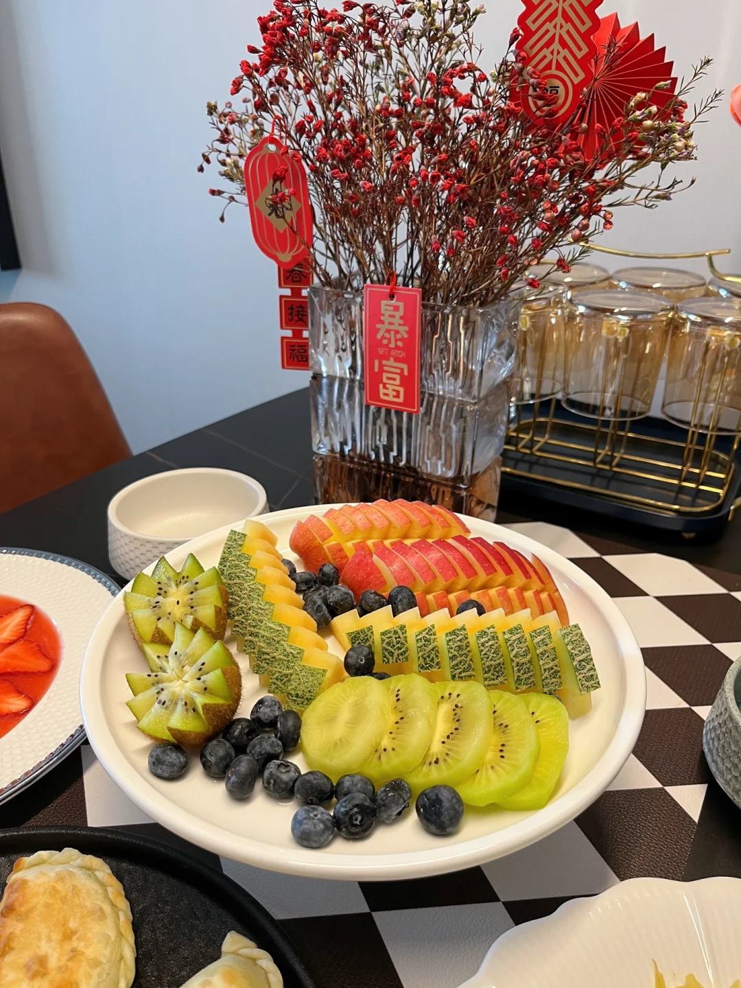 【今日菜单分享】 [福R]韭菜盒子 [福R]炸春款 [福R]草莓山药 [福R]青椒土豆丝 [福R]腊肠荷兰豆 [福R]糯米元宵 [福R]水果拼盘 [福R]饮品:特调气泡饮 五路财神迎进门,祝大家财源滚滚,新年暴富! 祈求新的一年里,财运亨通,兴旺发达。