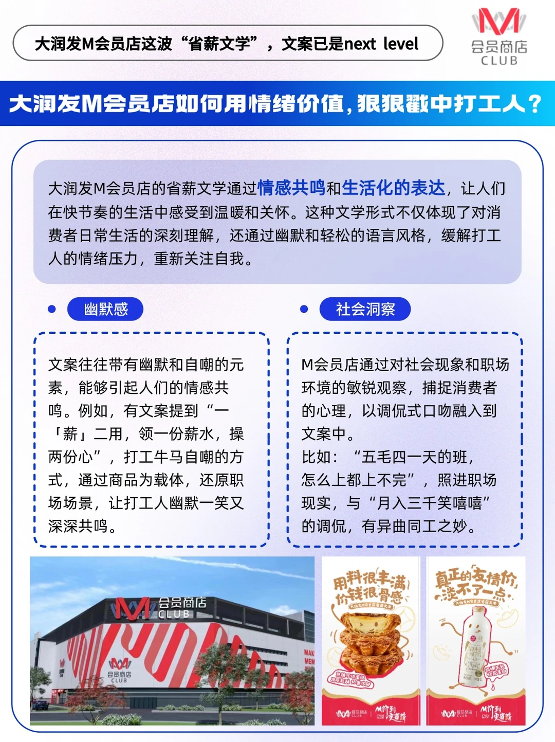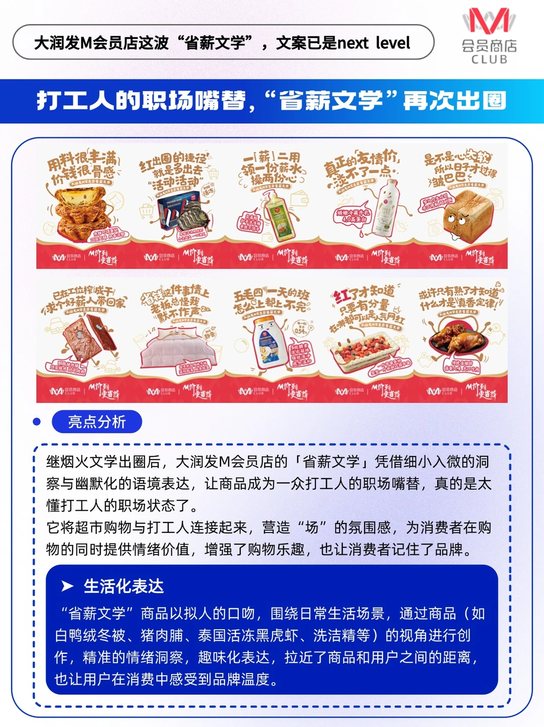 继「烟火文学」出圈后,大润发M会员店的「省薪文学」凭借细小入微的洞察与幽默化的语境表达,让商品成为一众打工人的职场嘴替,真的是太懂打工人的职场状态了[doge]