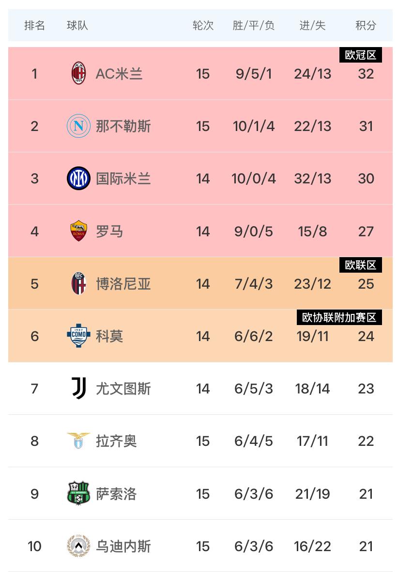 又翻一辆车!意甲第15轮开赛前并列榜首的那不勒斯客场0:1不敌乌迪内斯,三连胜终结且双线两连败,积分榜掉落至第2与榜首的AC米兰相差1分,多赛一场领先国际米兰1分。。 随着榜首两队的非平即负(早场AC米兰2:2萨索诺),晚场进行的国际米兰看到登顶积分榜的机会。国际米兰只要客场全取3分,将时隔多轮再次拿下积分榜第一。 机会给到了,加油国际米兰。