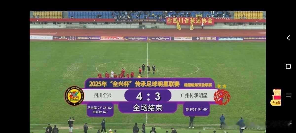 四川队4比3赢了广州队。 比分看起来挺正常,但这是场退役明星赛。前一场湖北队赢了北京队,这一场四川队只要赢广州队,就能把湖北队送回冠军组。两边踢得,不能说心照不宣吧,至少是毫不掩饰。门将出击像散步,后卫解围慢半拍,就差直接把球踢进自家球门了。 谁也不是第一天看球,这种场面见多了。大家骂的是假球,但心里更难受的是那个味儿——退役了,图个乐,怎么还踢得这么累? 这感觉,就像你回老家过年,本想跟发小喝顿痛快酒,结果他掏出了个收款码,跟你说这顿得按KPI算。那份人情味儿,当场就散得无影无踪。 我们骂的不是输赢,是那股子算计。 我们怀念的不是竞技,是那份纯粹。