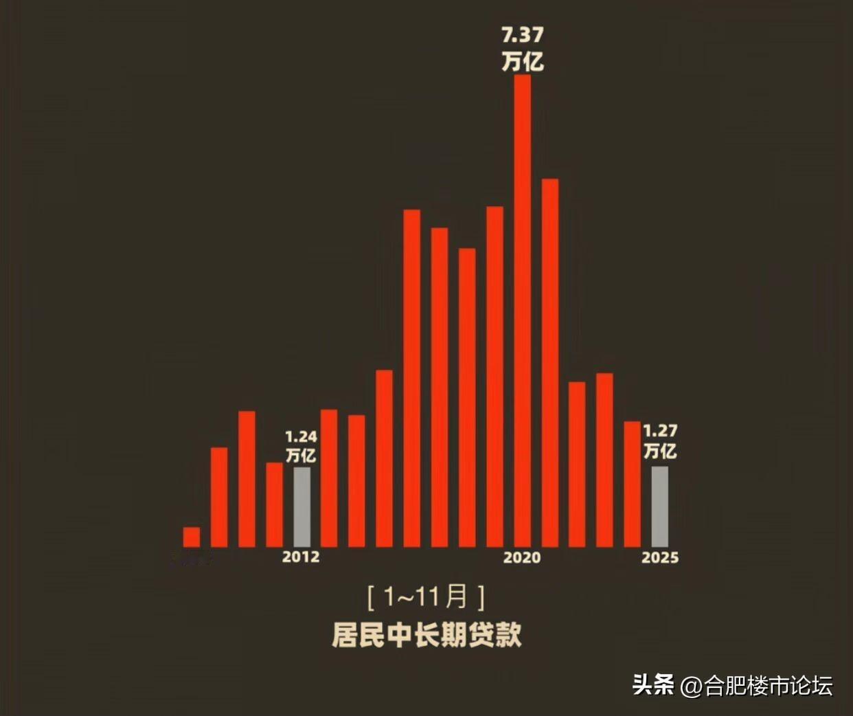 看到过去一二十年的居民中长期贷款数额变化。都是在高峰期买房的多啊。2019-2021年,是真的疯狂,现在就有多后悔吧。 今年1-11月中长期贷款的只比2008年多。