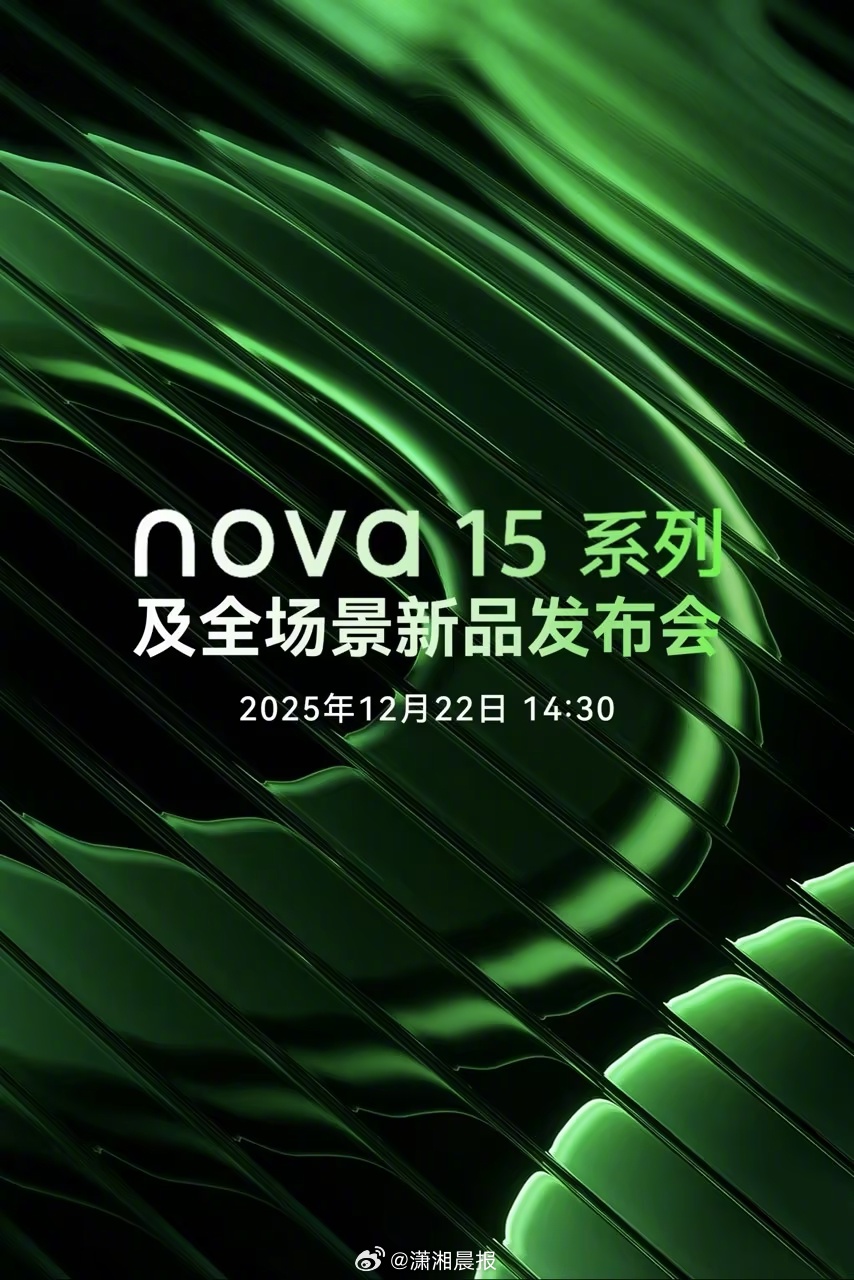 #华为12月新品发布会官宣#华为12月的科技盛宴已就位!从今日最新发布的官方海报可以看到,nova 15 系列及全场景新品发布会将于12月举办,期待已久的nova 15 系列将重磅亮相,同时新款平板、穿戴设备及鸿蒙智家新品也将同台登场。据悉这次全面焕新的nova 15系列堪称十年超越之作,有推测称这次主打色为海报上纹理同款的绿色,并且此次还将搭载金属中框,带来史上最好看的nova。#华为nova15来了#
