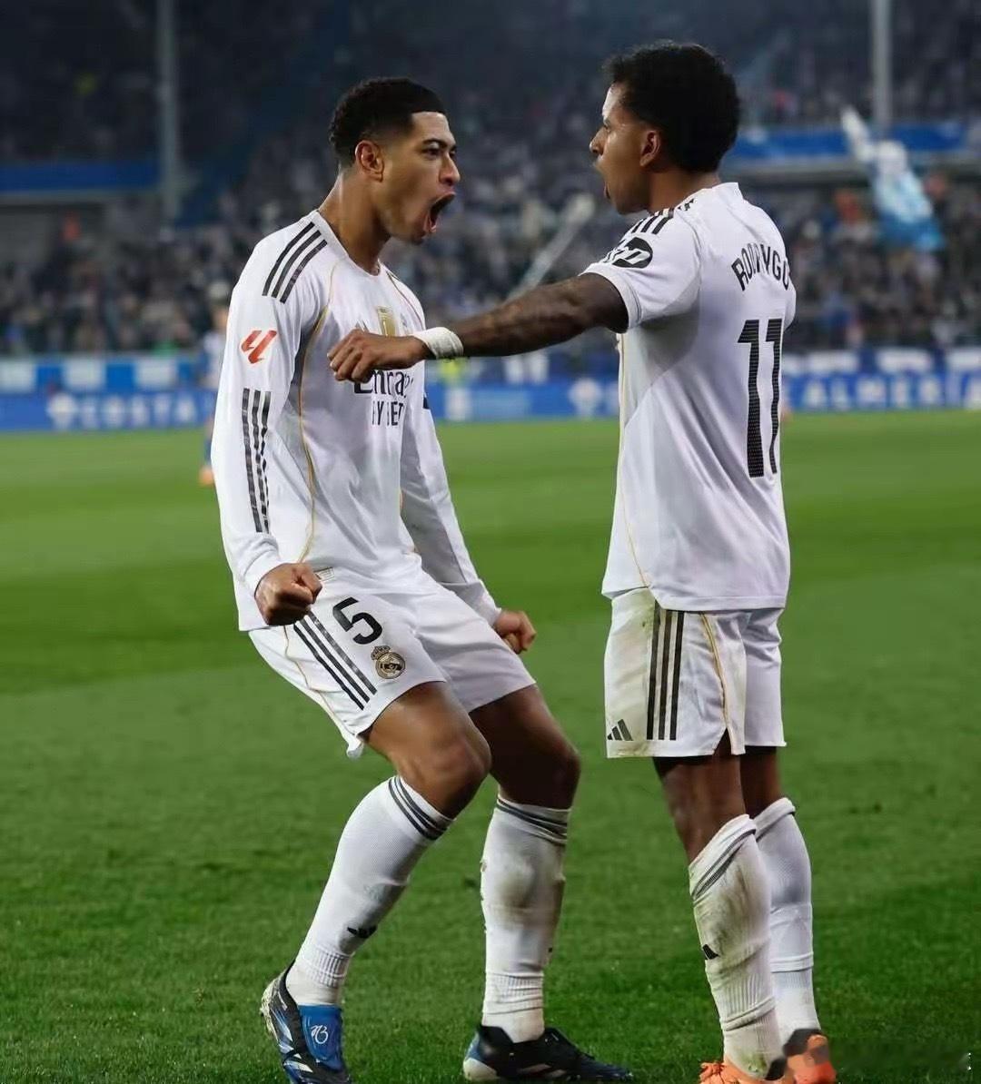 阿拉维斯1比2皇马西甲第16轮,皇马客场2-1击败阿拉维斯,这场胜利可不容易。皇马开场不久就失球,压力那叫一个大。不过贝林厄姆和罗德里戈超神,成了逆转关键。贝林厄姆中场控场、传球厉害,罗德里戈速度快、灵活,创造了好多进攻机会。赛后贝林厄姆在IG晒出和罗德里戈的合照,配文“虽然过程不太顺利,但总算拿到分数了。我的兄弟罗德里戈回来了!”这默契配合和深厚友谊太让人羡慕。虽说这场赢得不漂亮,皇马防守还有漏洞,但三分到手,未来还是值得期待!