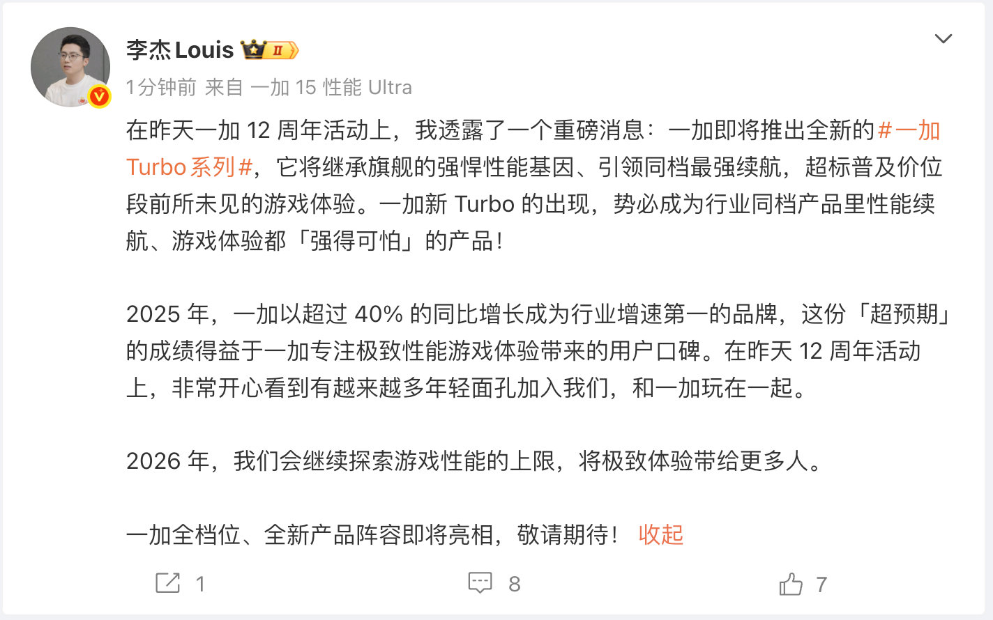一加即将推出全新的一加Turbo系列继承旗舰的强悍性能基因、引领同档最强续航,超标普及价位段全新游戏体验。一加后续销量,应该稳了!