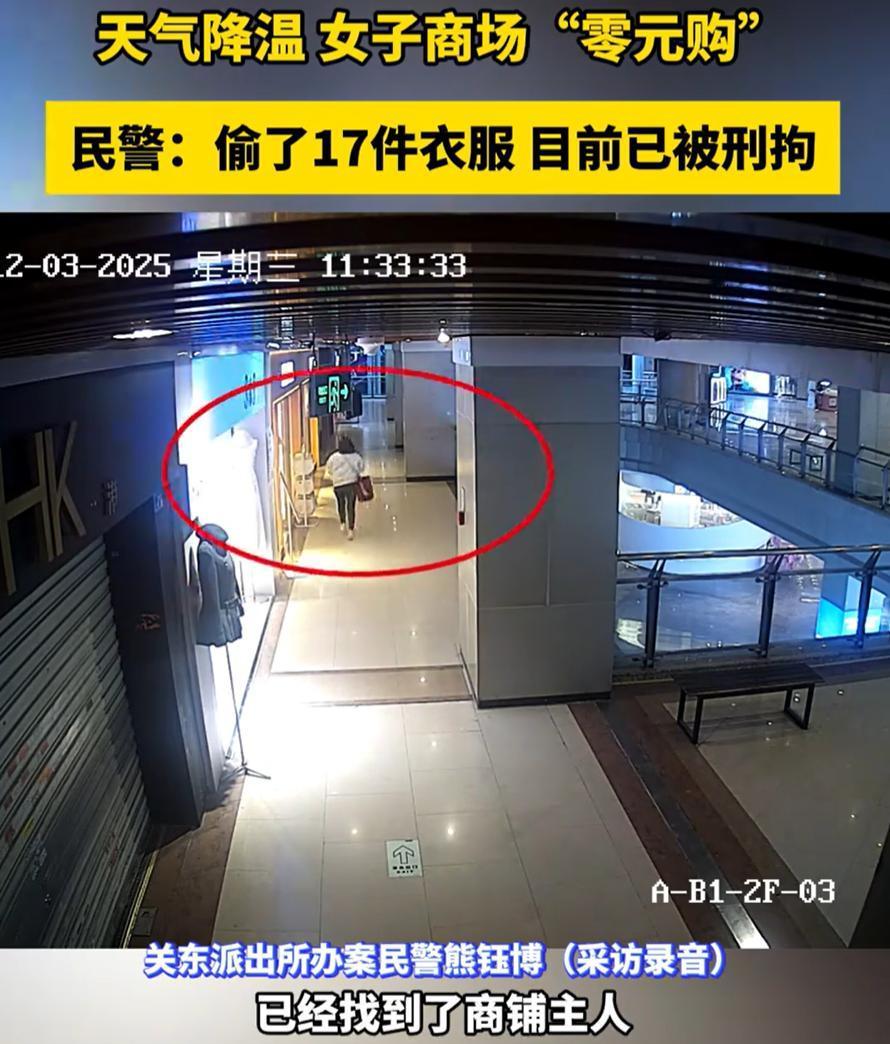 太糊涂了!湖北武汉,天气降温后,女子想要穿新衣服,可她又不想花钱,就把主意放在了“零元购”上,偷偷顺走一件皮草大衣,结果很快被抓,警方发现她偷了17件衣服,这也让她年纪轻轻,就被刑事拘留了 监控显示,女子当时假装路人,在店门口看衣服,趁店员不注意,连忙把衣服拿走离开,而她拿的这件衣服是一件价值3400元的皮草,只是她没想到,这一举一动就在商城的监控下面 没过多久,民警就找上了门。这一查才发现,她偷的远不止这一件。前前后后加起来,她一共从商场偷走了十七件衣服,目前已经核实了十五件。而她偷衣服的理由很简单,天冷了想穿新衣服,又舍不得自己掏钱 目前,这名女子已被警方刑事拘留 不得不说,她这种行为是真的糊涂,要知道法律对盗窃罪的认定是有明确标准的。根据刑法,盗窃公私财物数额较大的,或者多次盗窃、入户盗窃、携带凶器盗窃、扒窃的,都会追究刑事责任。像这样连续盗窃十七件衣服,显然已经达到了刑事立案标准 天气冷了,想穿暖和点、穿体面点,这种心情谁都能理解。但如果经济暂时不允许,完全可以选择更实惠的方式,买件平价但保暖的棉服,或者去淘淘打折的旧款,甚至和朋友交换衣服穿,都是可行的办法。为了穿件皮草大衣,赌上自己的前途和自由,这笔账怎么算都划不来