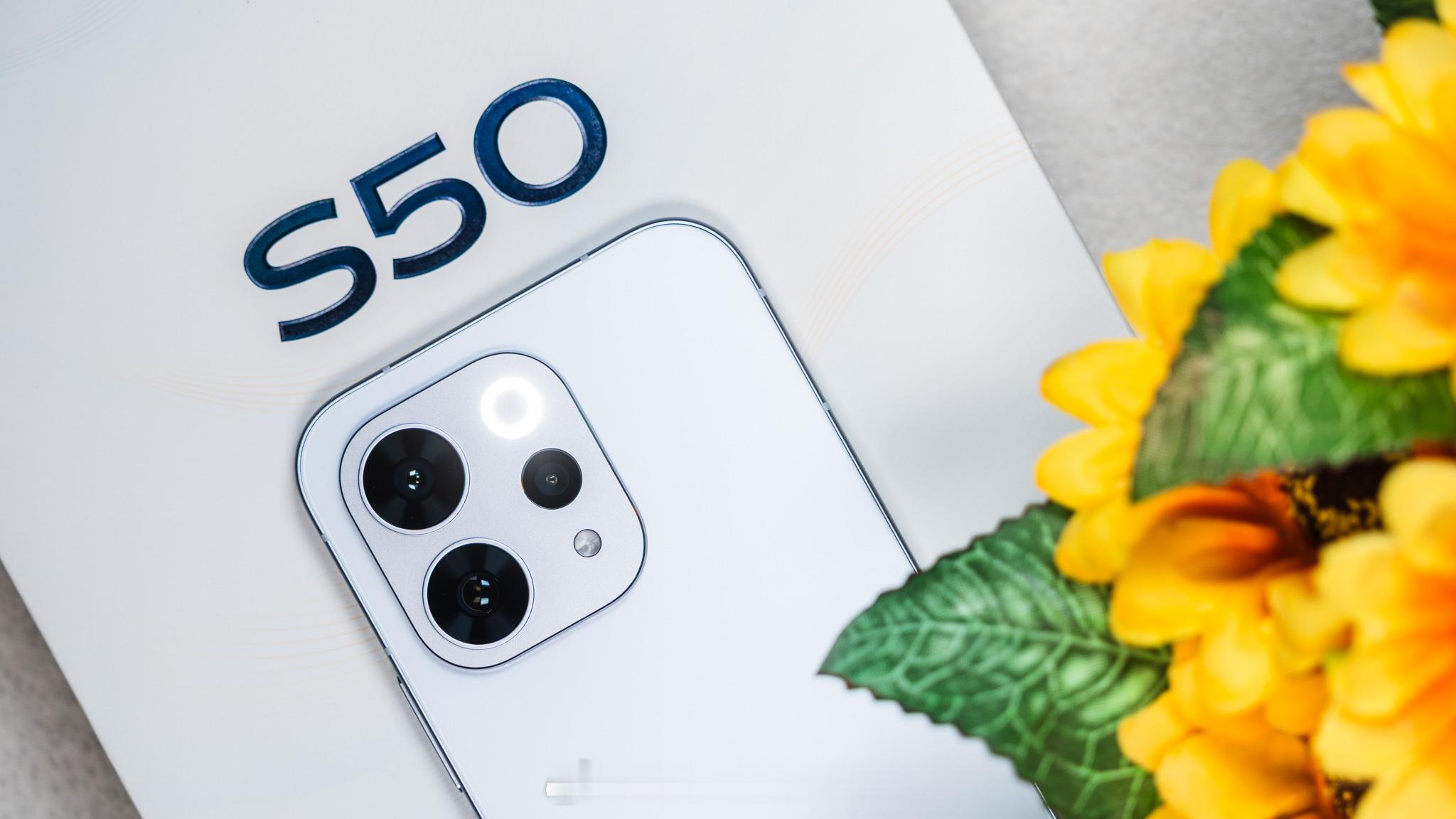 It's vivo S50 【告白】&【悠悠蓝】。如果把 S16-S20 看成是一个产品时期的话,半年前发布的 S30 系列现在看起来更像是一个 S20 和 S50 之间的“过渡产品”——产品定义、影像规格、外观设计、大小杯的产品区隔已经开始发生变化,但核心的硬件规格和一些核心产品特性还是延续之前的 S 系列产品。而现在,S50 系列则可以说是一个开辟了 S 系列新征程的“起点”:这一代的产品,向过去 S 系列给大家留下“刻板印象”的一些规格彻底的 Say Goodbye。而早前 S30 Pro mini 在海外以 X200 FE 的名号上市其实就已经明晃晃的直说了 S 系列新的发展目标:那就是在 X 系列持续向上精进的同时,留出来的空间由 S 系列“顶上”。S Pro 用上 n-1 代次旗舰处理器和接近 X 系列标准版的影像传感器组合已经是用了两代的升级方式,而这一次……大踏步升级幅度,终于来到了 S 系列标准版身上。S50 这机器,放在过去,怎么地都得是 S Pro 这个档位的产品。S50 从内到外的变化,就是一个词:“升档”。从 S16 标准版开始消失的金属边框这一代正式回归,手上的“告白”和“悠悠蓝”配色都是 S 系列非常具有代表性的配色,而它们的不同则是“独白”不是纯白色,而是具有 S 型流动光影的纹理设计,“悠悠蓝”则是低饱和的天空蓝纯色,两个配色的后盖都是 AG 缎面柔光玻璃。而它 R 角也顺应当下的流行趋势变成了大 R 角 的设计,机身尺寸则进一步缩小至中端机颇为流行的 6.59 英寸,握持更趁手了一点。相较于它外观的变化,它最大的变化其实是核心的性能规格。从过去非常“典型”的中端时尚机“得过且过”配置,一下子就赶上了类似于性能机的配备:骁龙 7 Gen4 一下子跃升至骁龙 8s Gen3,随之带来的还有存储规格的大提升:LPDDR5X+UFS 3.1,比起上一代的 LPDDR4X+UFS 2.2 可以说是鸟枪换炮……而核心规格的提升直接带来了操作流畅度的跃升。除此之外,周边规格也大幅度“跳跃式升级”:换掉了过去 S 系列的“顽疾”转子马达,用上了 X 轴线性马达;扬声器终于变成了立体声,而且也没有牺牲 S 系列标志性的前置柔光灯;指纹识别则是开了同档产品的“先河”,率先在 S 系列全系都用上了超声波指纹,让蓝厂在指纹识别的部分继续领跑行业,成为第一家中端+高端旗舰(折叠屏除外)全部升级为超声波指纹的厂商。以上的这些规格,对 S 标准版来说堪称是革命性更新……当然,它在没有变得更厚和更重、尺寸还变小了的同时维系了 6500mAh 的电池容量。S 系列在影像规格上领跑已经有几代产品了,尤其是将 IMX882 3X 潜望这样的旗舰标准版级别的长焦传感器下放到中端时尚系列,成为了其面对竞品最大的“杀手锏”。对比已经上市竞品一家是 JN5 3.5X 一家没有长焦,S50 继续成为这个档位上的影像佼佼者(大家从昨天那组广州天环广场圣诞球的夜景照,尤其是长焦夜景照里就能看出它超越同档产品长焦的成像素质)——而它的领先不仅仅是规格,也同样继承了 X 系列“影像功能丰富”的优势,也不会因为是相对较低的产品系列就把 RAW 这样的影像基础功能给砍掉。S50 除了延续之前 S 系列的各种人像、动图还有胶片相机的玩法,这次专门设置了一个『实况模式』——千万不要以为只有这个实况模式才可以拍摄 Live Photo,而是普通模式下可以随便拍摄 Live Photo,而如果你想在 Live Photo 上玩花样的话,可以打开实况模式,进行各种诸如『高光慢动作』、之前就有的『希区柯克变焦』、『变焦运镜』以及各种类似于短视频模板式的 Live Photo 拍摄。S50 在影像规格、基础画质和基础功能不落人后的同时,依旧保持着蓝厂式的『功能优先』的影像风格。要说什么是影像部分还差口气的……咱下次把 800 万像素超广角给换了可以不?S50 这一代,是越来越有小 X 味道的产品,包括频段支持也提升到了 15 个 5G 频段、总计 43 个频段。之前那批性价比骁龙 8s Gen3 机型没有的 5G-A,这机器也有了(只是 WLAN 部分还是 Wi-Fi 6)。内外都在大升档的 S50,正在开启 S 系列的下一个新世代。vivo S50