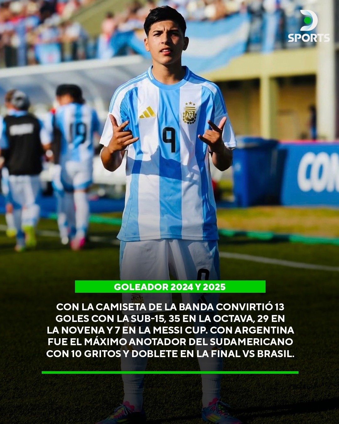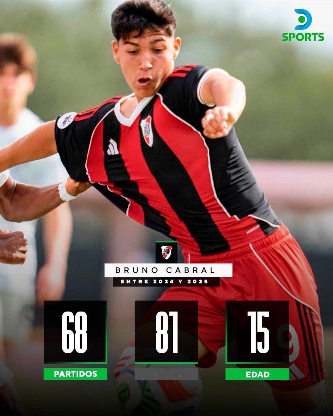🥇梅西杯 金靴&赛事MVP获得者——布鲁诺·卡布拉尔🇦🇷⚪🔴 河床青训球员布鲁诺·卡布拉尔以7粒进球荣膺梅西杯最佳射手,助力河床夺冠。🏆🤩 这位15岁的前锋在2024至2025年间,于阿根廷足协青训联赛中创下68场比赛攻入81球的惊人纪录!⚽️ 阿根廷u15 国家队9场13球⚽️ 河床青年队8级联赛28场35球⚽️ 河床青年队9级联赛26场26球⚽️ 梅西杯5场7球🌟 2024年及2025年阿根廷足协青年联赛总射手王。🌟 南美U15锦标赛最佳射手,为国家队攻入11球中的10球!决赛对阵巴西时梅开二度。🌟 梅西杯最佳射手兼MVP。这孩子非同凡响。💎布鲁诺卡布拉尔河床青训瑰宝系列