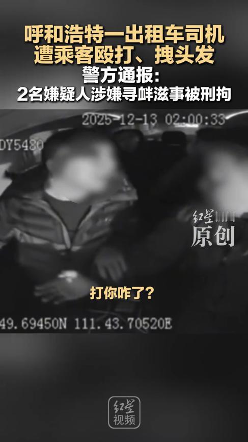 “严查到底!”12月13日,内蒙古呼和浩特,一的哥半夜拉2名醉酒男子回家,结果半路上2人无故找事,不仅言语辱骂、撕扯头发,还挥拳猛打的哥脑袋,等到车停下后,2人又将的哥拉下车殴打近10分钟。网友:太嚣张了! 现在人们出行的方式有很多种,不少人都喜欢坐网约车或者打出租车,毕竟都明码标价,安全性也有保障,可对于这些司机来说,却能遇到各种奇葩乘客。 当天凌晨,出租车师傅正在街头等客人,忽然,他看到不远处有人招手,便立即把车开了过去,虽然对方一身酒气,但师傅还是让他们上了车。 在确定了目的地后,师傅便出发了,2名男子喝得酩酊大醉,后面还有一名女子,结果醉酒男子在和师傅聊天时,指责师傅的声音太大了! 随后,2名男子就和师傅吵了起来,其中一人还开始动手打人,虽然女子极力劝阻,可是并没有任何作用,就这么遭受了一路的“折磨”后,出租车终于来到了小区门口。 不料,车子停下后,二人又开门殴打师傅,吓得师傅连车费都不敢要了,可是二人揪着师傅的头发就把人强行拽了出去,过了10多分钟,师傅才返回车内,随后快速开车离开了。 第二天,警方根据掌握的信息,很快就将两名嫌疑人抓捕归案! 网友看后表示,这俩货的酒品太差了,仗着喝点酒就为所欲为,法律可不会惯着他们,慢慢在小黑屋里反省吧! 信息来源:《12月14日消息,网传呼和浩特一出租车司机被两名男乘客多次殴打、辱骂,拽头发抢手机;警方通报:2名犯罪嫌疑人因涉嫌寻衅滋事,已被依法刑事拘留。》凤凰网安徽