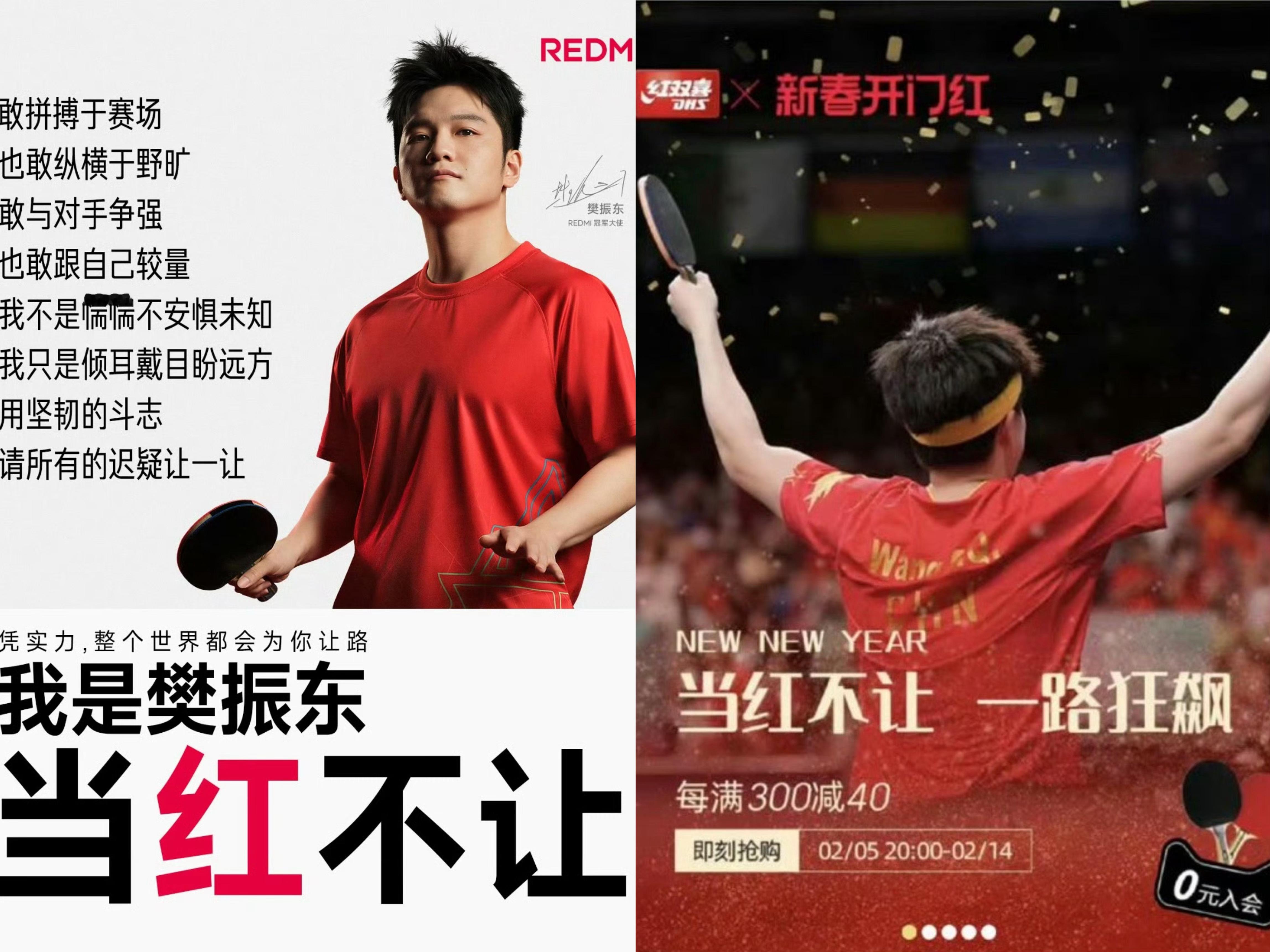 别偷了别偷了。“未来不止于此”是安踏给代言人樊振东的广告语。“当红不让”是红米给代言人樊振东的广告语。“当身体达到极限,不屈的意志会带你突出重围”是央视给樊振东巴黎奥运独守全区的评语。 “花季老将”是从媒体到球迷喊了很多年的樊振东代表性的称呼。