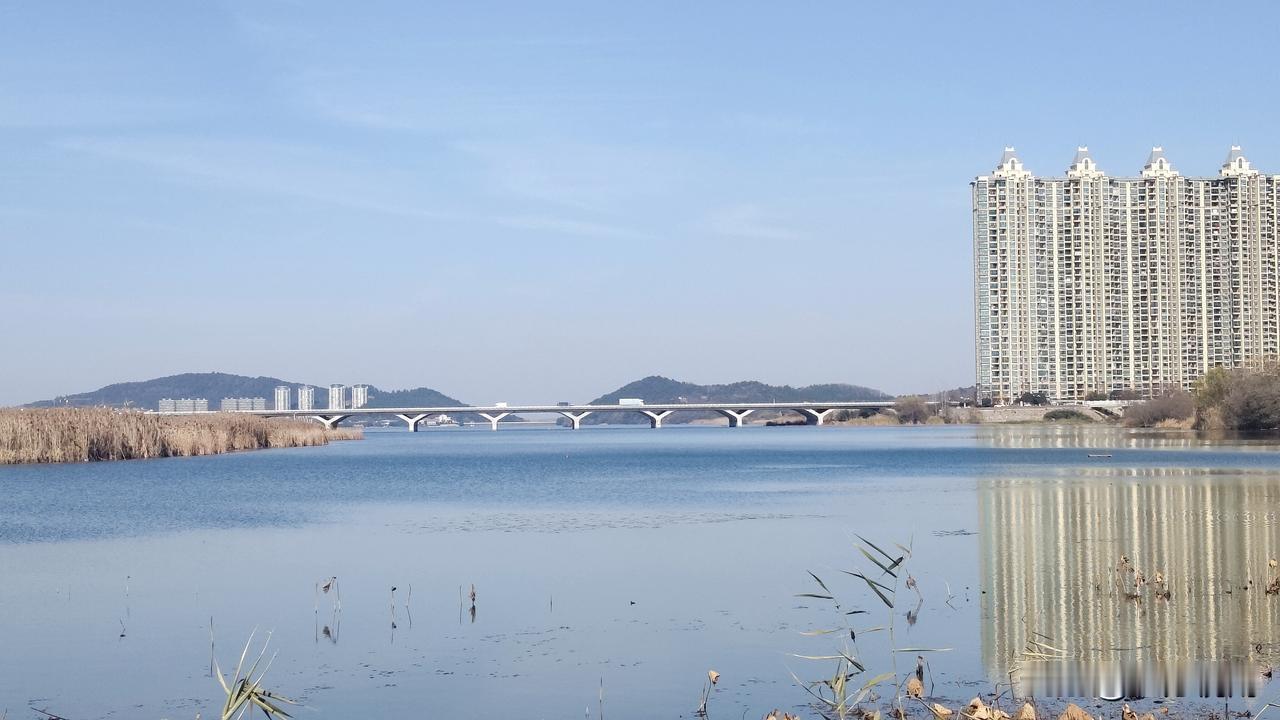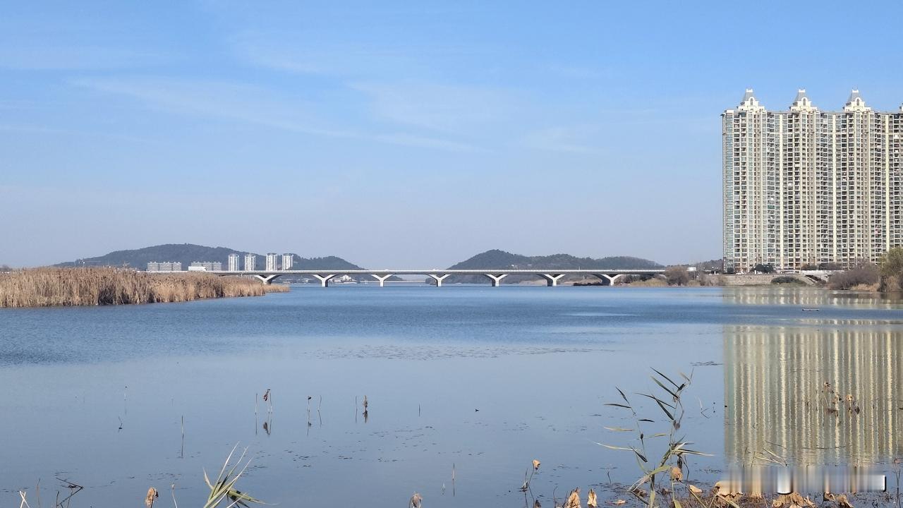 晨雾还没褪尽,南京市溧水区的卧龙湖就把冬的清冽揉进了水里。湖面静得像块冻透的蓝宝石,青灰色大桥横跨南北,将溧水的岸线轻轻串联,桥身轮廓被晨光照得柔和,整段影子沉在水下,连栏杆的纹路都清晰可辨,仿佛水下藏着另一个对称的溧水天地。 岸边的芦苇褪成了浅黄,穗子垂在水面,风一吹,倒影便跟着轻轻晃,和桥影缠在一起,晕开细碎的涟漪。阳光慢慢爬高,给桥的棱角镀上层暖金,影子也染上柔光,水面像是铺了层碎银,把溧水的天青、云白、桥灰都妥帖收存。 偶有水鸟低掠过湖面,翅膀划破镜面,桥影与天光瞬间碎成粼粼光斑,转瞬又归于平静。溧水的冬意,就藏在这桥与影的相拥里,清宁又治愈,让人忍不住放慢脚步,沉醉在这卧龙湖的冬日限定画卷中。