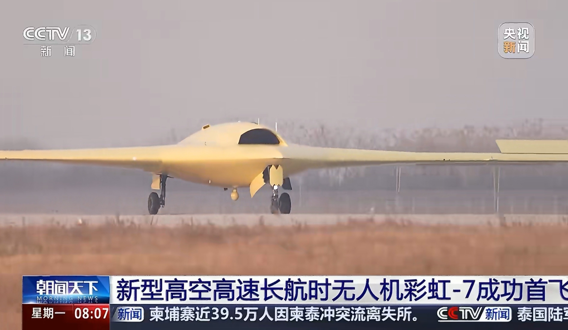 🔻彩虹-7无人机是和RQ-170类似的侦查隐身无人机,不过体量比RQ-170要大,最大起飞重量8吨左右,比RQ-170要大2倍。🔻和GJ-11/21那种攻击隐身无人机比又小一些。执行纯隐身渗透侦查任务,航程可以达到万公里级别。🔻目前成功首飞,估计设计定型和成熟还得过两三年。彩虹7成功首飞热点现场