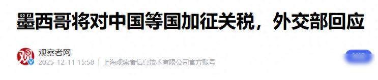 对华加税50%!墨西哥没等到中方妥协的电话,反而收到新一轮反制 墨西哥宣布,从2026年1月开始,对包括中国在内的亚洲国家商品加征最高50%的关税,这已经确定了,不是猜测,中国车企、家电厂和钢铁出口商受影响最重,原本20%的汽车关税直接涨到一倍,出口到墨西哥的产品几乎没法做了。 但很少人知道,墨西哥这个决定背后,有美国在推,2025年,美国拿水荒当理由,威胁要对墨西哥加关税,甚至要撕掉贸易协议,墨西哥八成出口都靠美国市场,没办法,只能听美国的,去围堵中国,有个墨西哥官员私下说,我们就像夹在两块石头中间的核桃,只能顺着强者说话。 中国的态度让墨西哥有点意外,本来以为中方会坐下来谈,结果商务部直接启动了贸易壁垒调查,还说要对墨西哥的铜矿和石油出口加限制,全国工业雇主联合会的负责人摇头说,这办法看着能多收点税,可长远看,伤的还是自己的产业链。 最尴尬的是墨西哥的制造业,当地汽车厂九成零件都得从中国进口,现在一边要加税打压,一边又离不开这些货,有车企老板说,关税一涨,零件成本就往上走,最后还是得消费者来掏钱。 墨西哥总统克辛鲍姆大概没料到,他这一回讨好美国,反倒把中国推到了对立面,中国外交部直接点出墨西哥违背了贸易规则,墨西哥这边呢,一边想哄着美国,一边又舍不得丢掉中国这个第二大贸易伙伴,现在只能硬着头皮,在两头夹缝里往前挪。 这场博弈结果可能让谁都没想到,墨西哥财政部指望多收三十七亿美元关税,可本国工业底子薄,产业链一有风吹草动就容易断,更别提就算加了税,中国货还是最划算的,毕竟全球找不出几个地方能像中国这样,东西又好又便宜。 墨西哥的工厂老板在算账,普通人愁着物价涨,总统在白宫和北京之间来回打电话,想找个台阶下,可时间不多了。