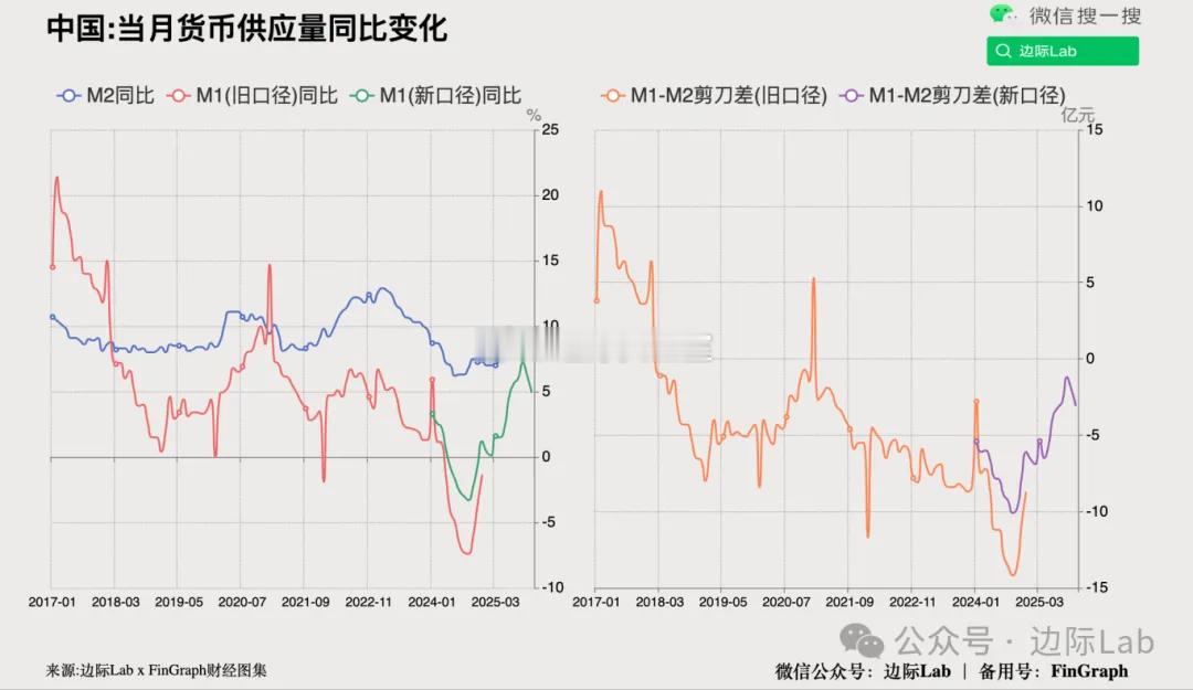 截至2025年11月末,广义货币M2同比增速降至8.0%,较10月的8.2%继续回落,显示整体货币投放节奏边际放缓;狭义货币M1同比增速同步下行至4.9%。M1与M2的剪刀差扩大至-3.1个百分点,较10月的-2.0个百分点进一步走阔,反映实体经济活跃度和企业投资、经营意愿仍偏弱。来源:边际Lab x FinGraph财经图集