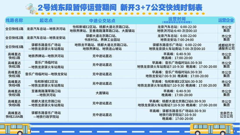 成都地铁2号线东段暂停运营,预计明年10月底恢复! 因成渝中线高铁以及铁路十陵南站建设需要,成都地铁2号线东段将实施升级改造,大面铺站、连山坡站、界牌站、书房站、龙平路站、龙泉驿站6个站点将自2025年12月20日起暂停运营,预计2026年10月底恢复。 地铁2号线东段暂停运营期间,为保障市民日常出行,原计划年底开通的地铁13号线和30号线提前至12月16日开通运营;同时,成都市和龙泉驿区将开行10条公交快线、优化既有公交线路,无缝接驳地铁2号线洪河站、成都行政学院站和13号线龙安站、30号线龙泉驿火车站南站等站点。 暂停运营10个月,地铁2号线东段将焕新升级 根据交通运输部门消息,地铁2号线东段暂停运营,主要是为了配合成渝中线高铁及铁路十陵南站建设,促进铁路与城市轨道交通线网融合、便捷换乘。 除了地铁30号线在铁路十陵南站设立“龙泉驿火车站南站”地铁站外,地铁2号线也将在铁路十陵南站增设地铁站点——“龙泉驿火车站”。这样,不仅能实现铁路、地铁便捷换乘,还可以打通铁路十陵南站与成都东站的快速连接通道,为市民提供多种乘车选择。 因此,地铁2号线东段需改建部分线路,在成都行政学院站和大面铺站之间新增“龙泉驿火车站”地铁站点。改建期间,地铁2号线大面铺站至龙泉驿站区段将不具备运营条件。 由于地铁改建不同于一般的工程建设,除工程建设本身外还涉及热滑实验、信号认证、系统联调、空载试运行、专项验收等多个环节。在确保施工和后续运营安全基础上,目前已最大限度整合施工流程,多工作面同步推进,将原计划14.7个月的工期系统优化成10个月。 新开10条公交快线如图所示