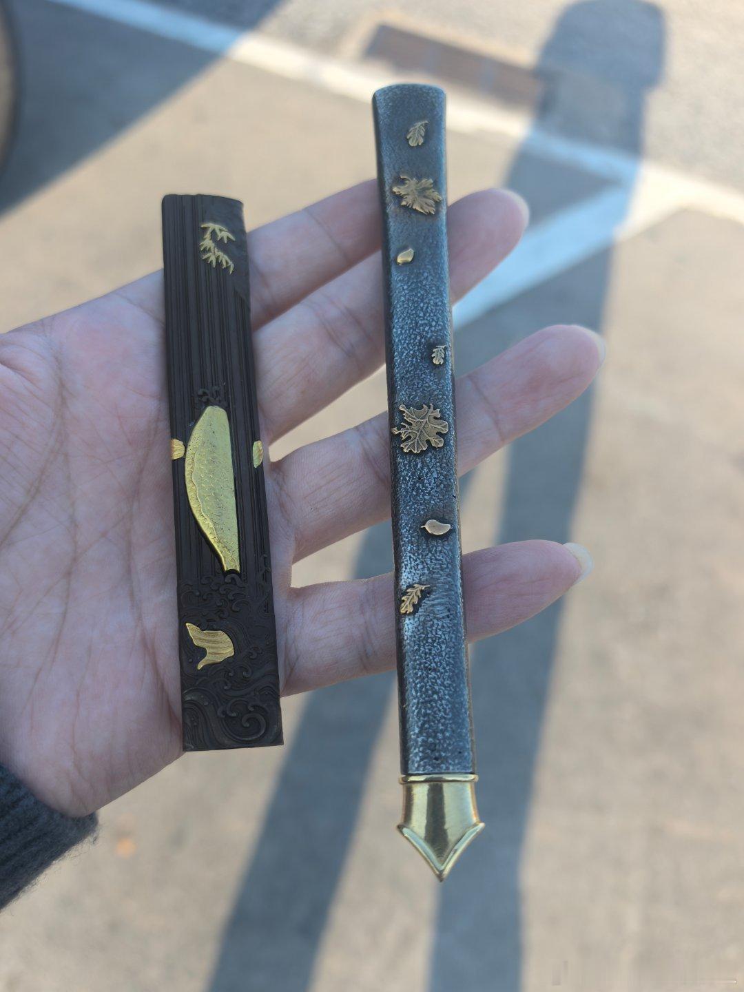 这个月新款茶针可以预定,估计月底上架,很有意思的作品,和悟秋大漆茶罐一样,是秋冬落叶主题的,这个是枫叶🍁。下面的刀条正在制作中,左边是新的文房小刀,很久没做过这种了,我推荐大家都入手,非常便宜,对了,悟秋茶罐没入手的抓紧冲,马上没有了