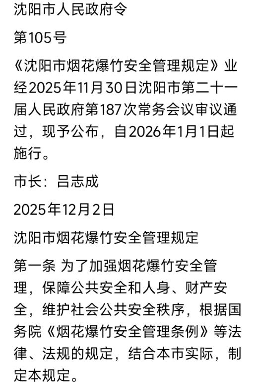 定了!2026年1月1日起四环以内含四环不让燃放烟花了,如果需要放别忘记去报备! 去年苏家屯人民还沾沾自喜,全沈阳都不让放烟花,但是苏家屯可以放烟花,但是有不少市民看到有人拿烟花往楼上非常危险,尤其苏家屯划定为市中心后,苏家屯在也不能像往年一样可以春节乱放烟花了,向放只能到四环外的苏家屯区域,这就是最大的变化,当然沈北一样,也是四环外的沈北也是一样! 规范烟花爆竹燃放是好事情,除了污染空气外,另外也是减少安全事故,你不放,但是邻居乱放给你家炸了,你心里难受不?所以我们要多支持这样的好政策,一定要安全过26春节,我们一起努力,要把这个事情传播出去,让沈阳市民知道,并且互相约束,实现四环内的安全,一起过一个平安的春节!