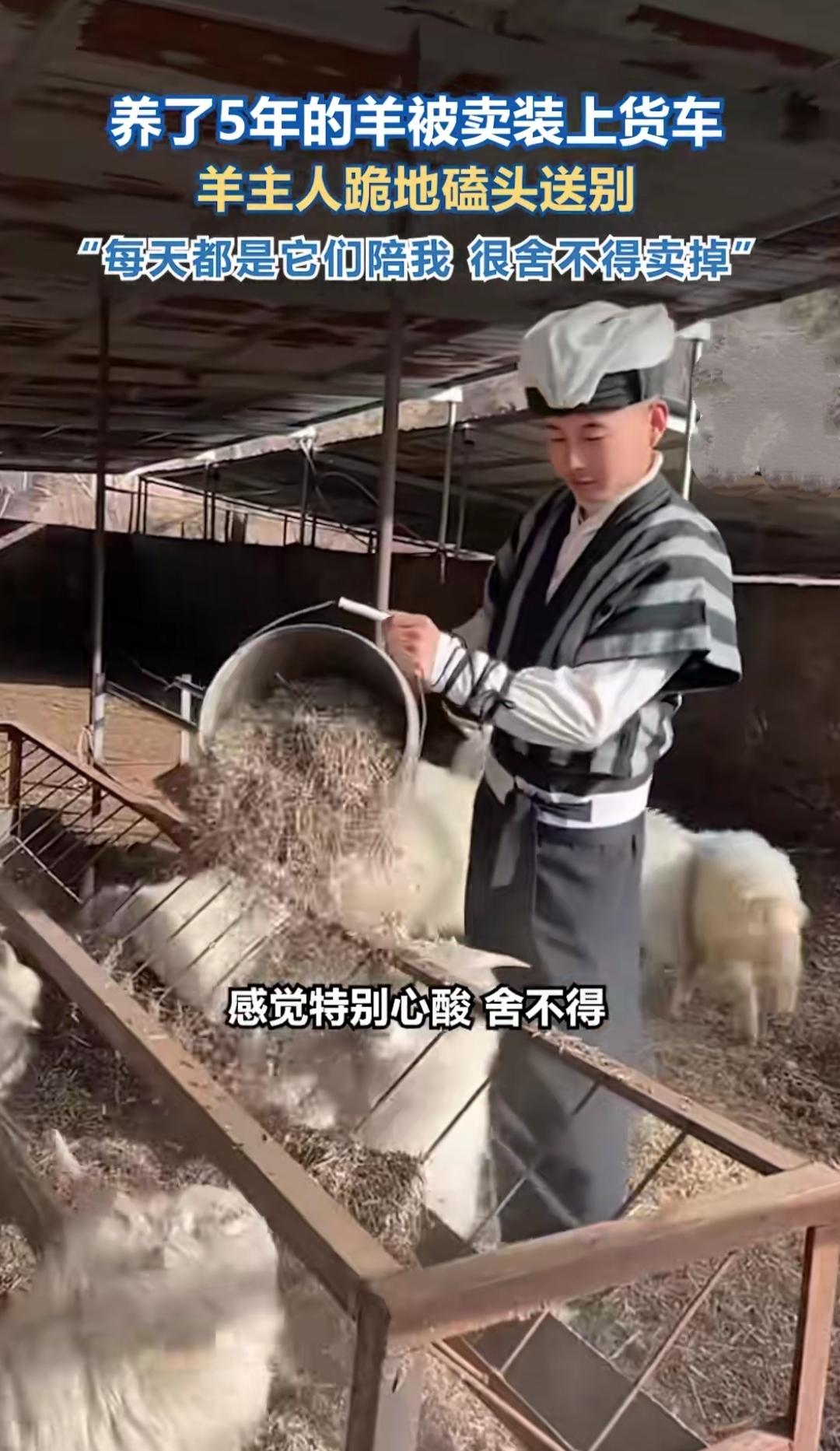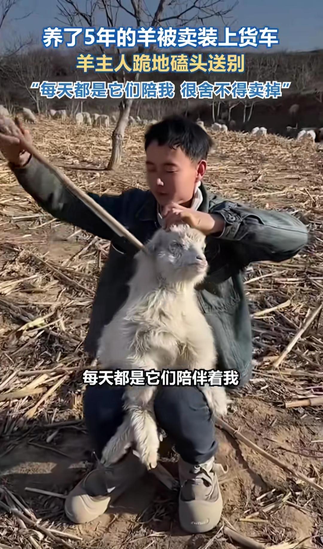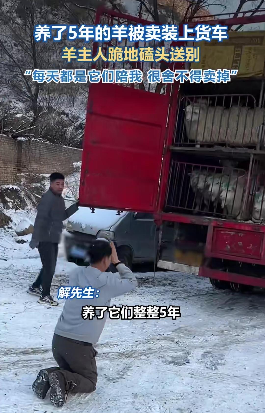 雪地里那个下跪的男人,对着一群羊哭红了眼——不是受了多大委屈,只是要把陪了自己5年的“家人”卖掉。谁能想到,牧羊人最舍不得的,从来不是羊毛和羊奶。 山西忻州的这位大哥,村里没了草场,家里要开销,硬着头皮才做了卖羊的决定。羊群好像懂他的难处,被牵走时一步三回头,没有嘶鸣,只有默默的回望。他扑通跪在雪地上,对着羊群念叨“谢谢你们帮衬这几年”,字字都是普通人的无奈与感恩。 想起另一位为给妻子治病的牧羊人,把42只山羊托付给堂哥就进城务工;还有舍不得小羊阿土的主人,离别时被紧紧跟着不肯走。这些羊群,是他们对抗贫困的底气,是漫漫长夜里的陪伴,早已不是牲畜那么简单。 生活里的离别总藏着身不由己,那些看似不起眼的陪伴,往往是最坚实的依靠。愿每个为生活奔波的人,都能被温柔以待,那些舍不得的牵挂,终有一天能圆满重逢。