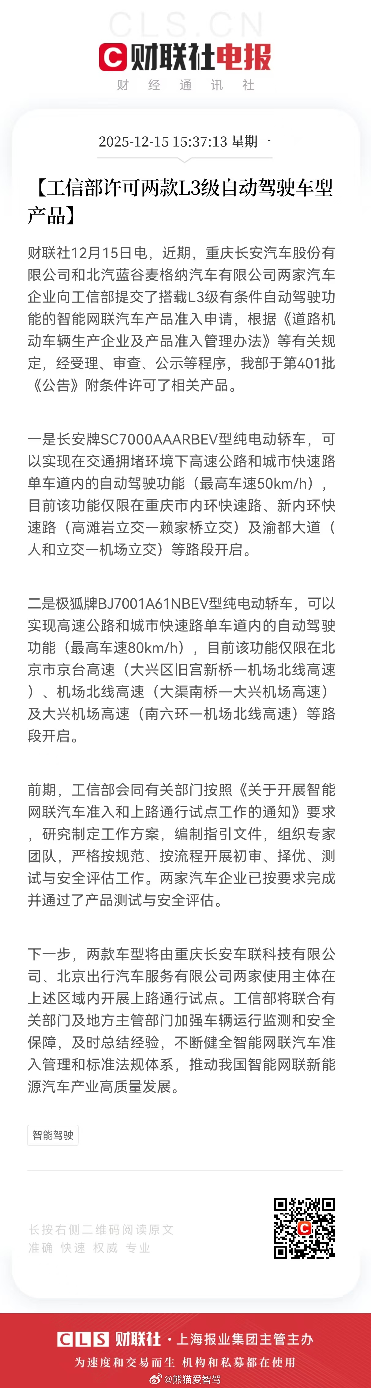 我国首批L3自动驾驶车型获准入许可 开始来了,重庆长安、北京极狐开始在各自限制道路上面开始测试了自动驾驶的时代,越来越近了,期待法律法规早日落地执行新能源汽车汽场全开
