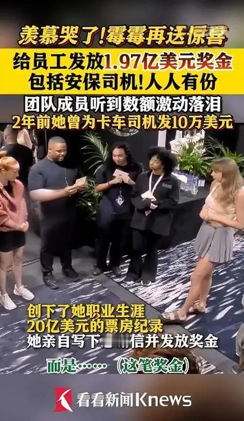 近日,霉霉在“时代巡演”落幕后,豪掷1.97亿美元(约13.9亿元人民币)给团队发奖金。从卡车司机到舞者,超50个岗位无一遗漏。她亲写感谢信,成员们激动落泪,此举尽显真诚,也让她“好老板”形象深入人心。霉霉 霉霉新专辑销量