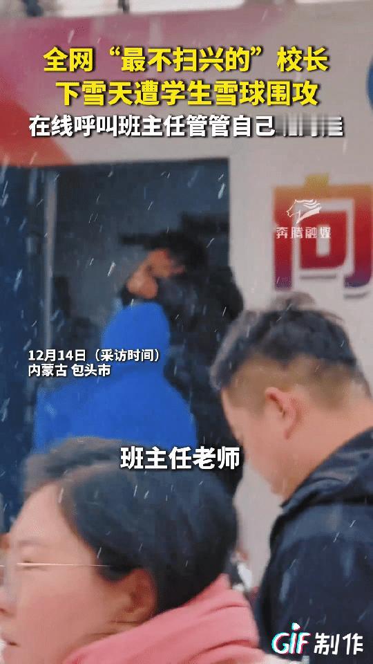 内蒙古包头下雪了,一学校的校长站在讲台上讲话,遭到学生围攻扔雪球,校长立马拿麦对着班主任喊话:“班主任老师管管你们的学生,打校长啦!”,可校长话还没说完又被雪球打了,但网友却乐了。 内蒙古包头这几天下了今年第一场雪,下午三点左右,一个穿黑羽绒服的校长站到操场主席台上,手里攥着话筒喊,同学们都到操场来,这学期的第一场雪,话还没说完,底下已经乱成一片。 学生们一听这话,立马吵吵嚷嚷冲出教室,黑压压的人群往操场涌,连保安都愣住了,穿红棉衣的校长见了反而笑出来,刚喊了句注意安全别滑倒,几个男生就抓起雪团朝他扔,他下意识抬手一挡,雪球擦着衣领飞过去,台下顿时笑成一片。 班主任老师呢,快管管你们班学生,打校长啦,校长举着话筒装模作样喊,话还没说完第二个雪球就砸在肩膀上,他弯腰抓起一把雪朝学生那边扬了扬,现场立马炸开锅,有女生直接躺雪地里打滚,几个男生在远处互相扔雪球,整个操场的笑声一路飘到教学楼顶上。 孩子们难得见这么大的雪,校长采访时搓着冻红的手说,比起在教室里闷头读书,让他们记住这种开心更重要,视频传开后,不少人说这校长真让人羡慕,监控里他被雪球追得满院子跑,自己也笑出了声,也许正是这种不紧不慢的教法,才让校园里的雪,变得不一样了。